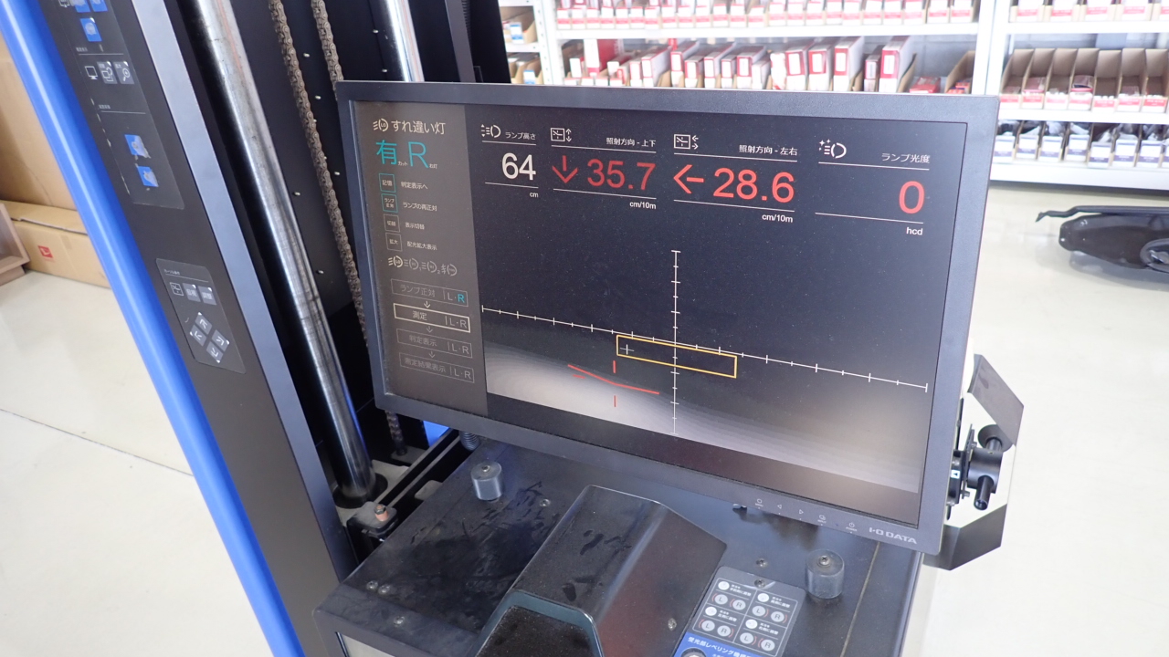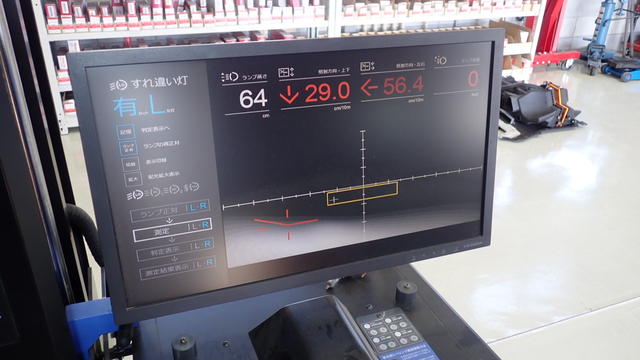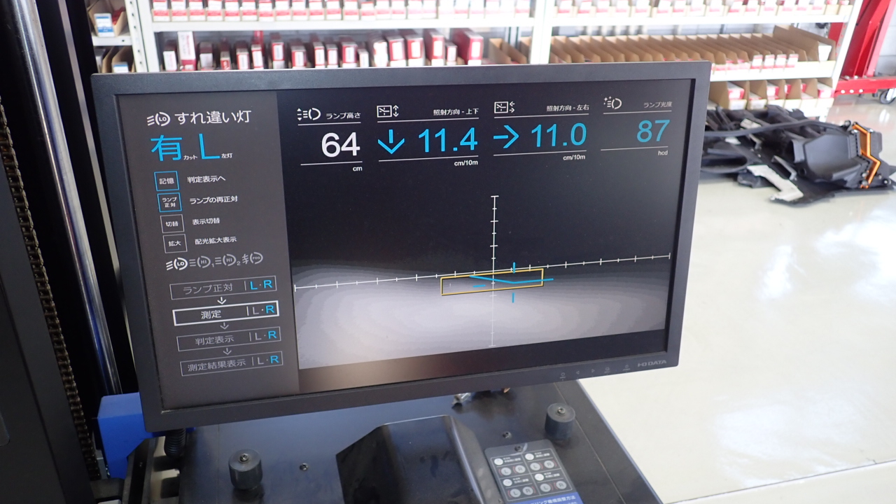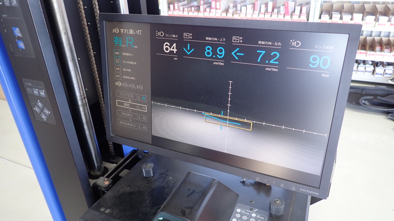ヘッドライトの光軸調整を実施しています。