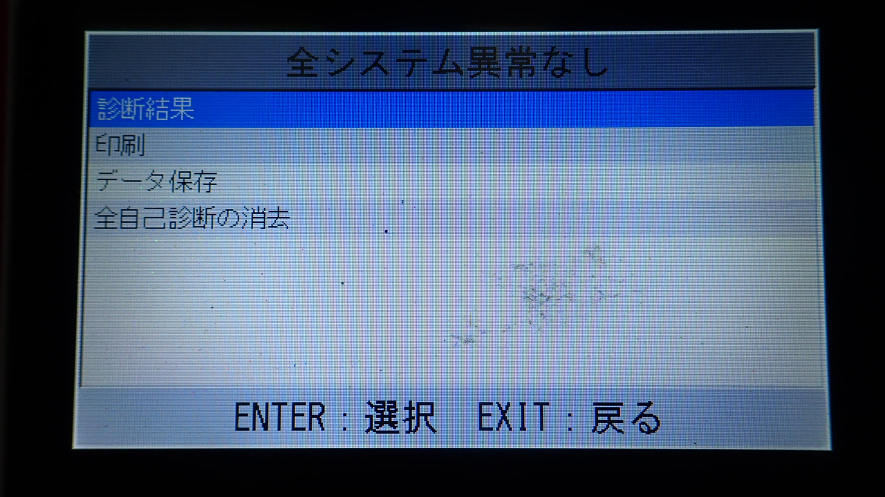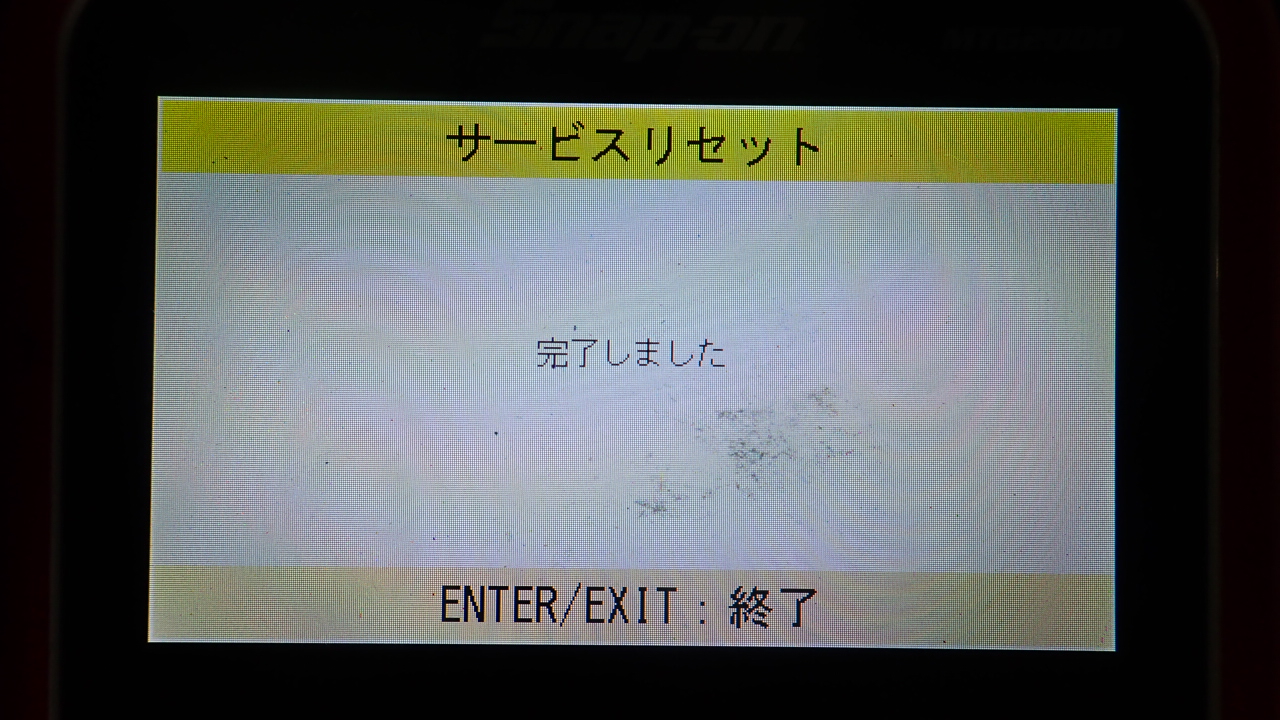 テスターにて故障コードの確認と、サービスのリセットを実施しています。