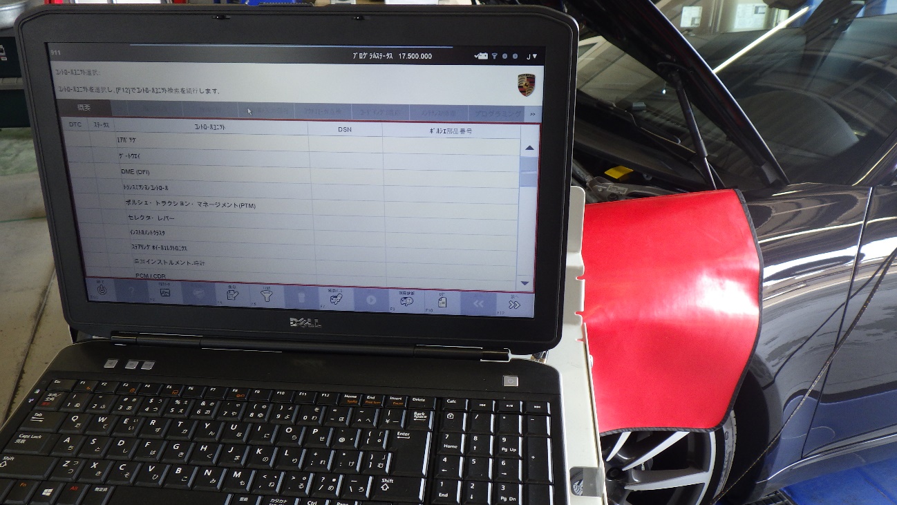 テスターを接続し、各コントロールユニットに不具合が無いか診断しました。