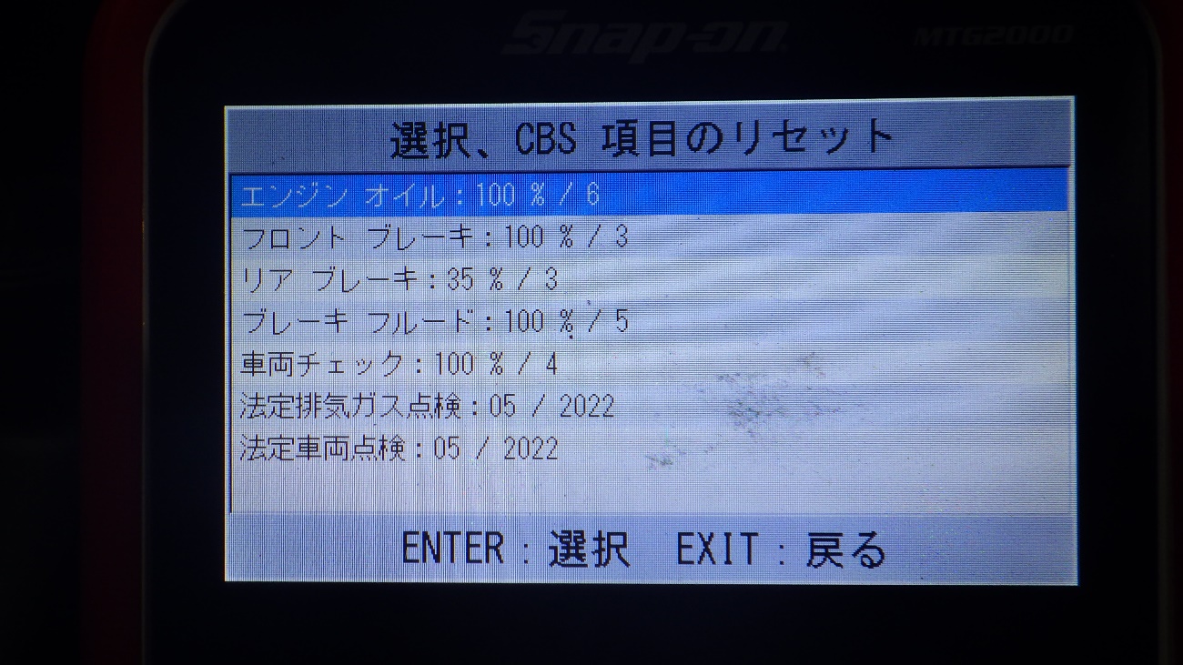 テスターを接続し故障コードの確認とサービスのリセットを実施しています。
