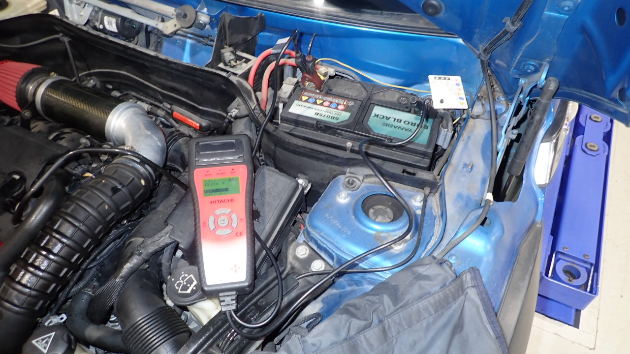 テスターにてバッテリーの点検を実施しています。