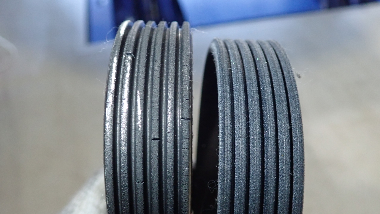 ドライブベルトに亀裂が発生していましたので併せて交換実施しています。