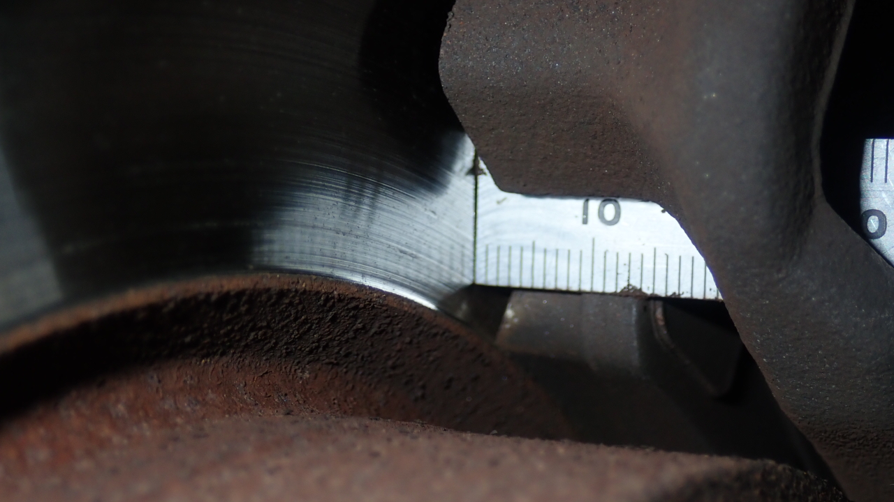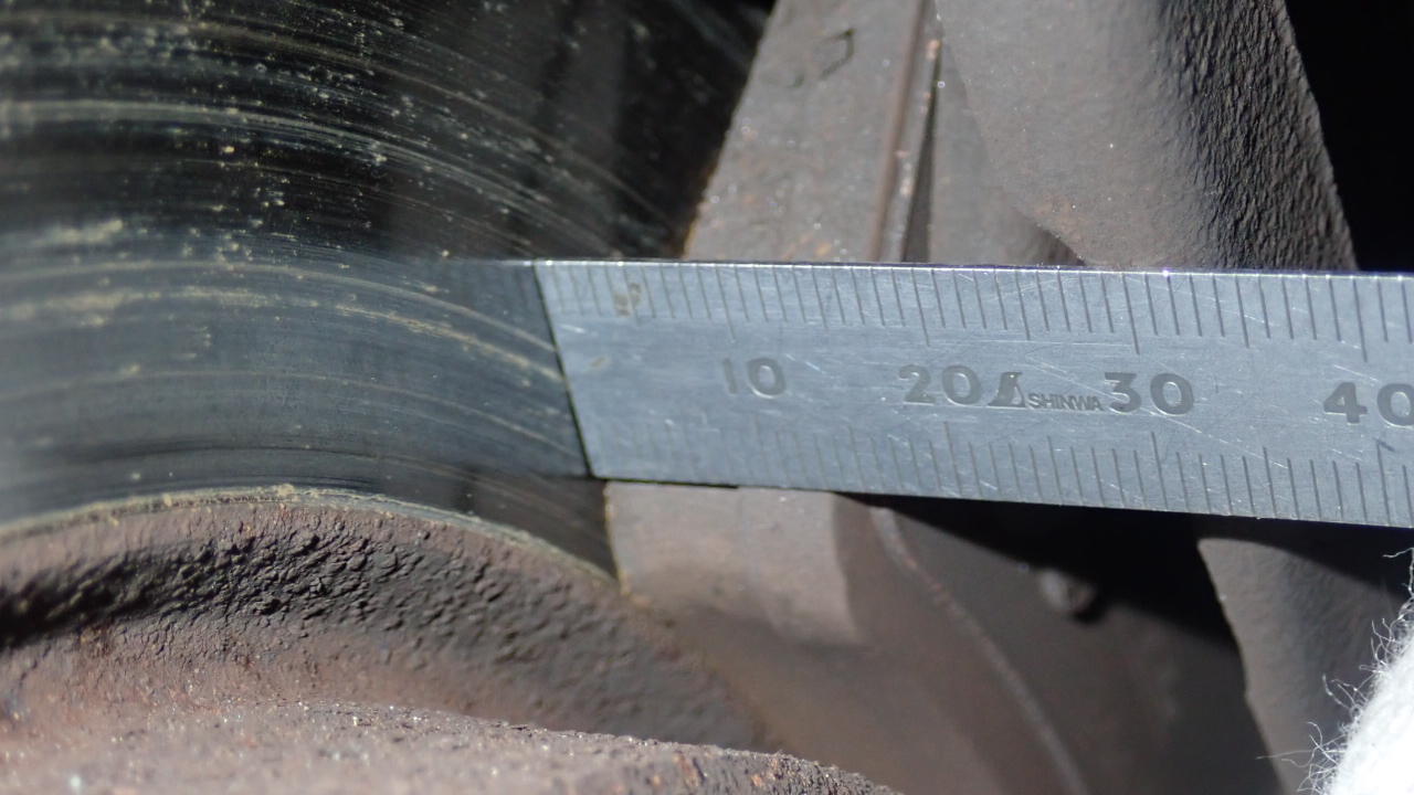 リヤブレーキパッド残量は約9.0mmです。