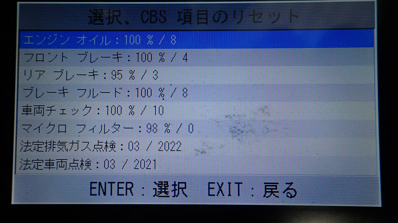 テスターにて故障コードの確認と、サービスのリセットを実施しています。