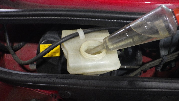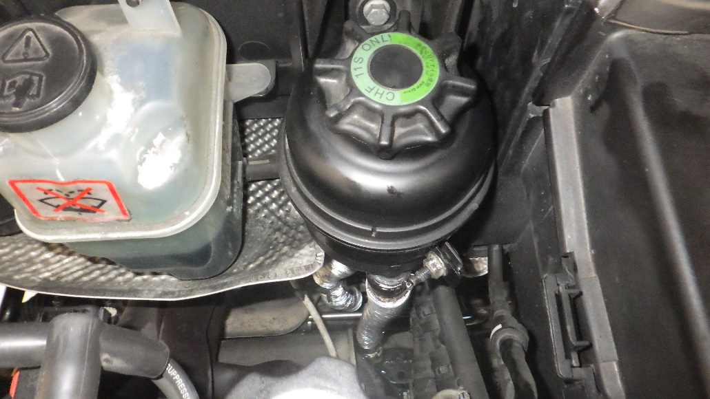パワーステアリングオイルを補充し規定量に調整しています。