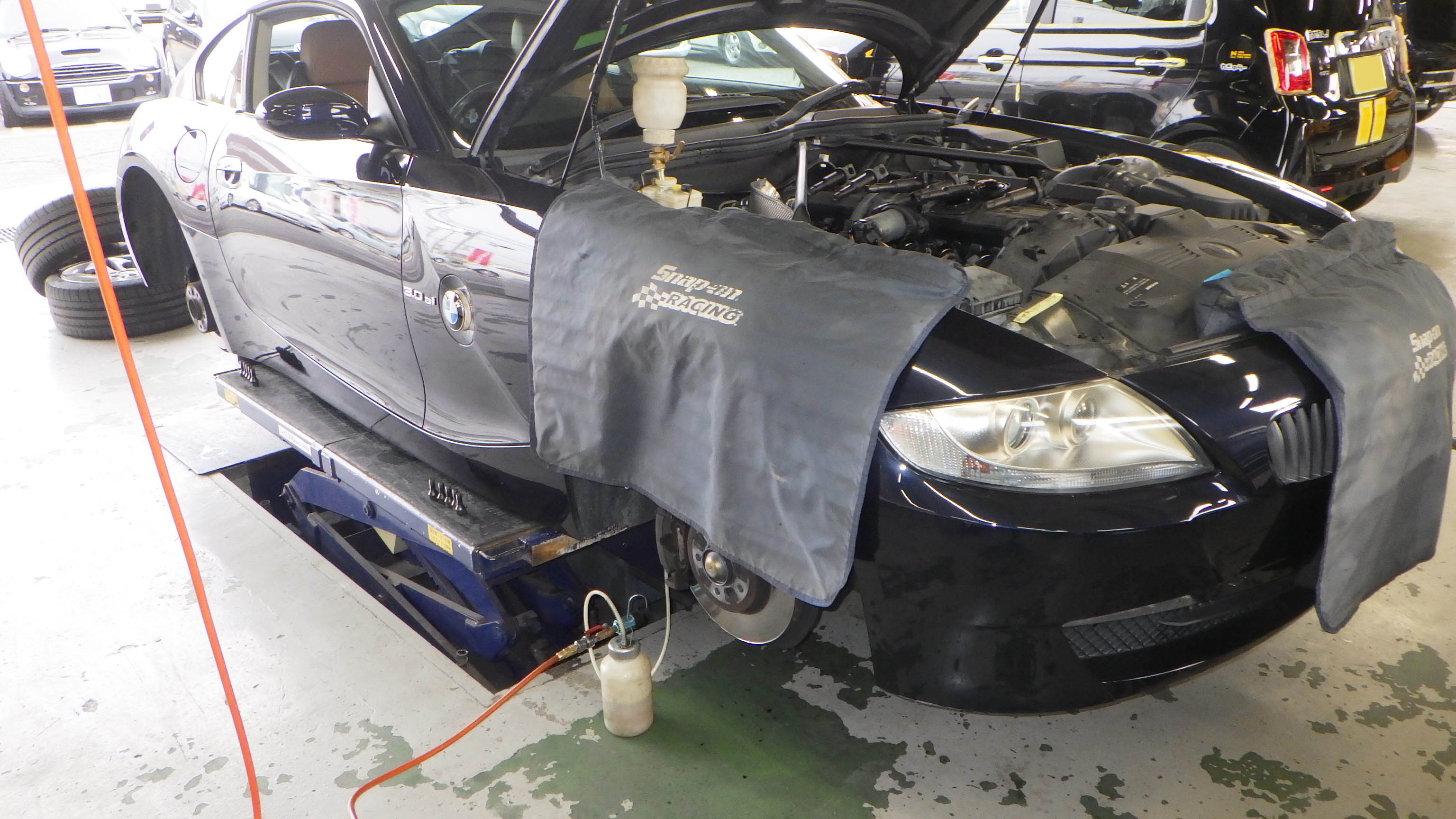 【車検】【修理】神戸市垂水区、H様、2013y、BMW、Z4、車検整備とブレーキフルート、スパークプラグ、エンジンエアクリーナーの交換レポートです!総額149,000円でした。有難うございましたm(__)m