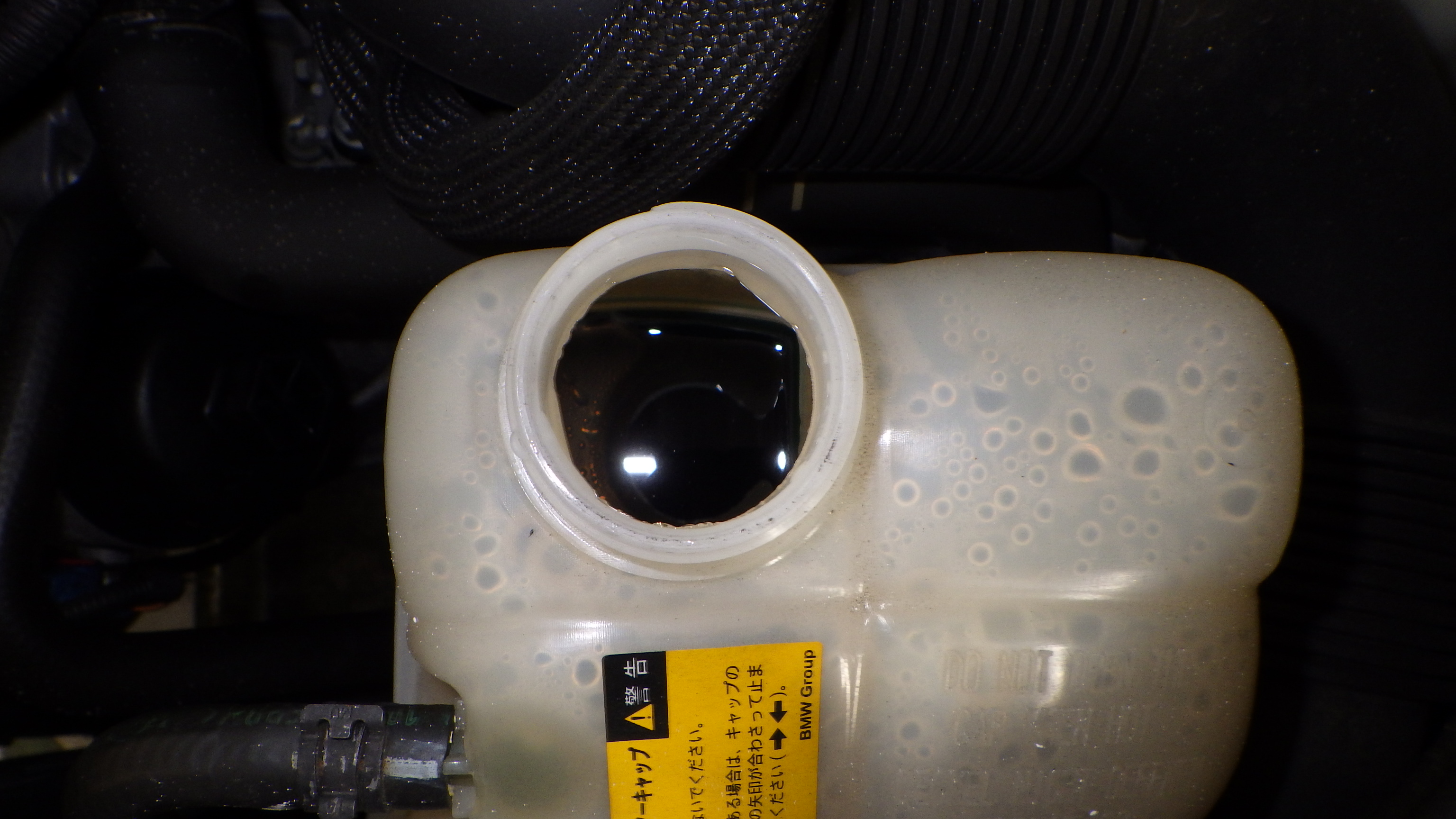 エンジン冷却水です。クーラント量、状態、各部漏れ等点検しています。