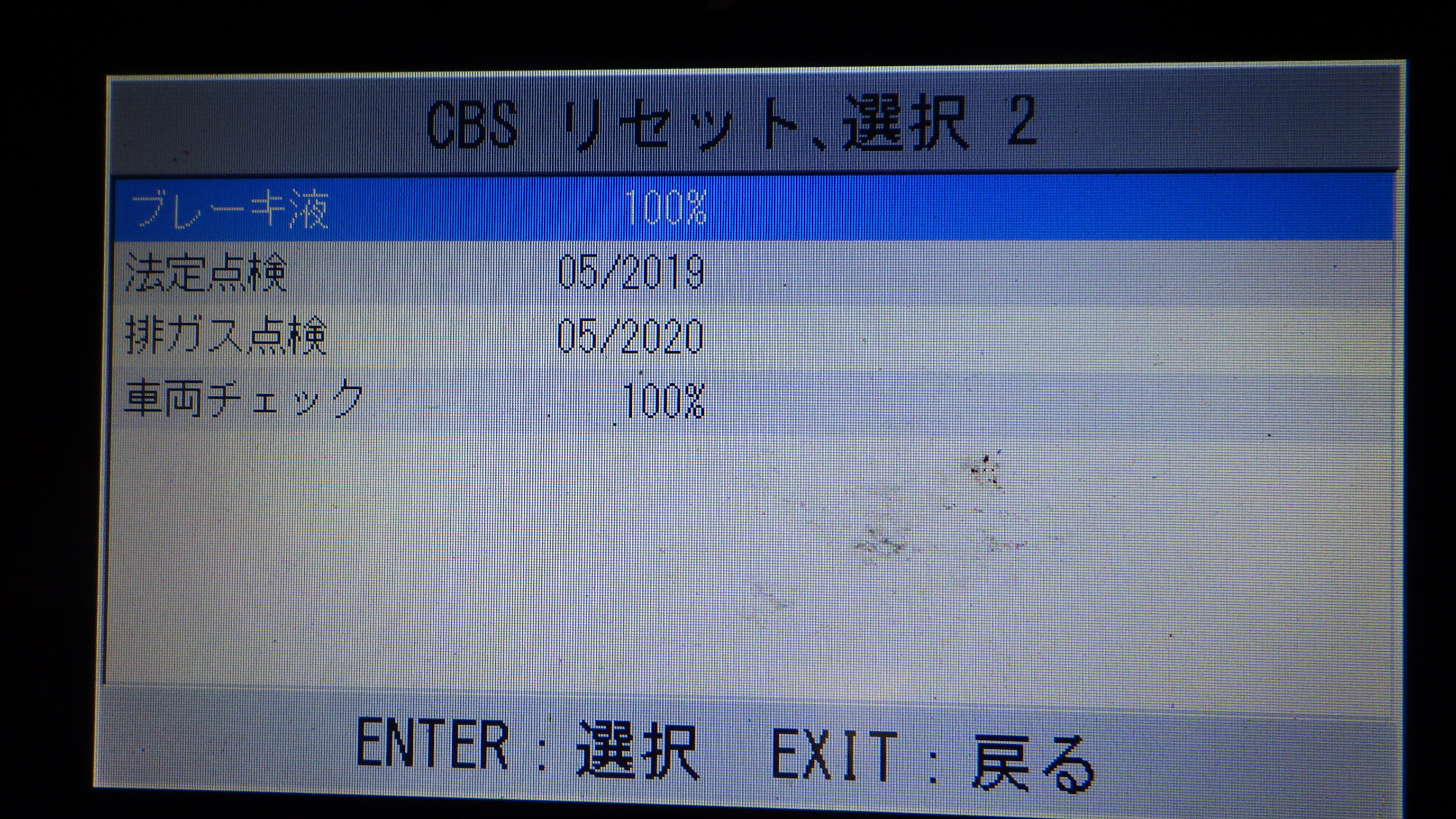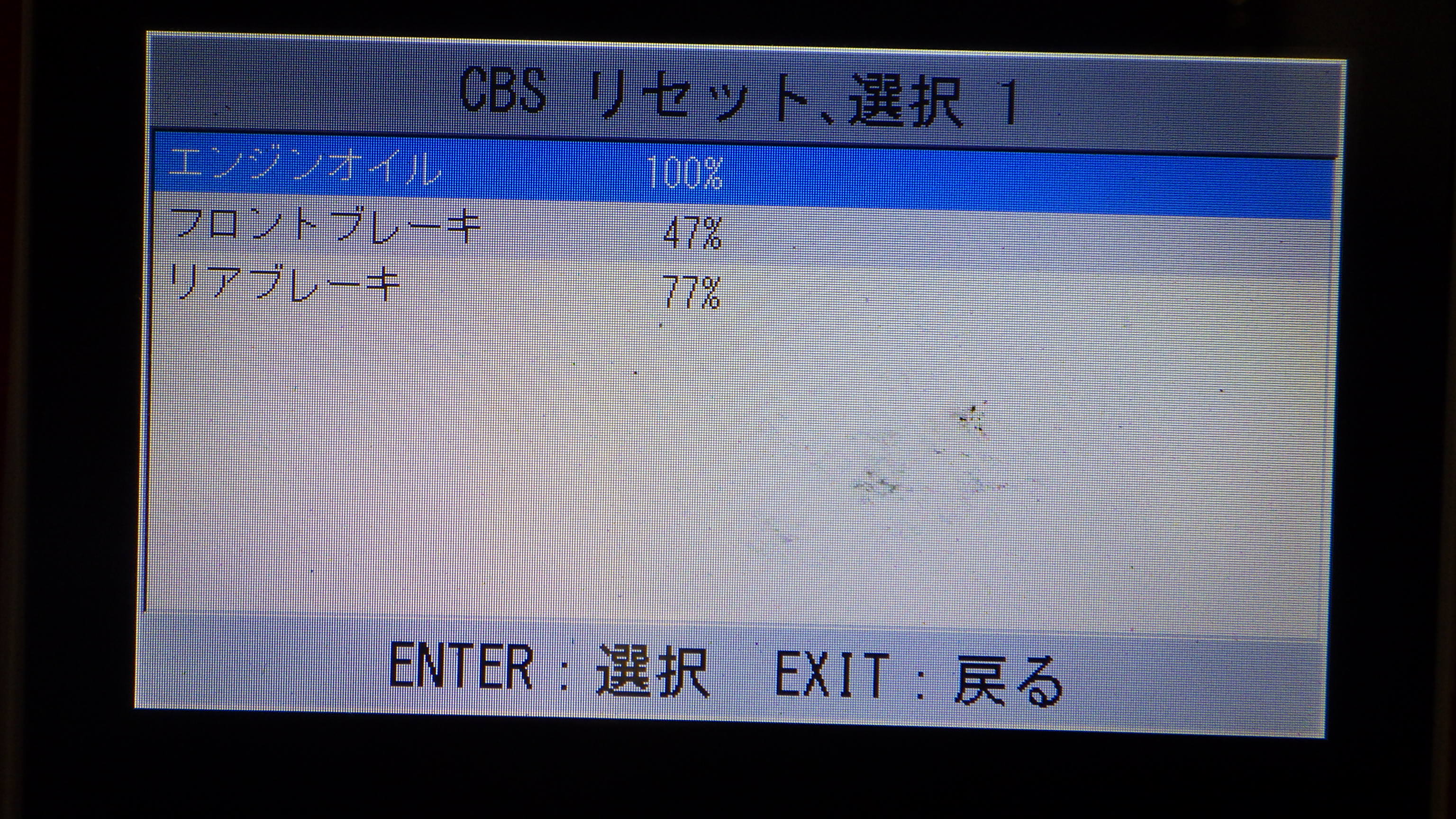 テスターにて故障コードの確認と、サービスのリセットを実施しています。