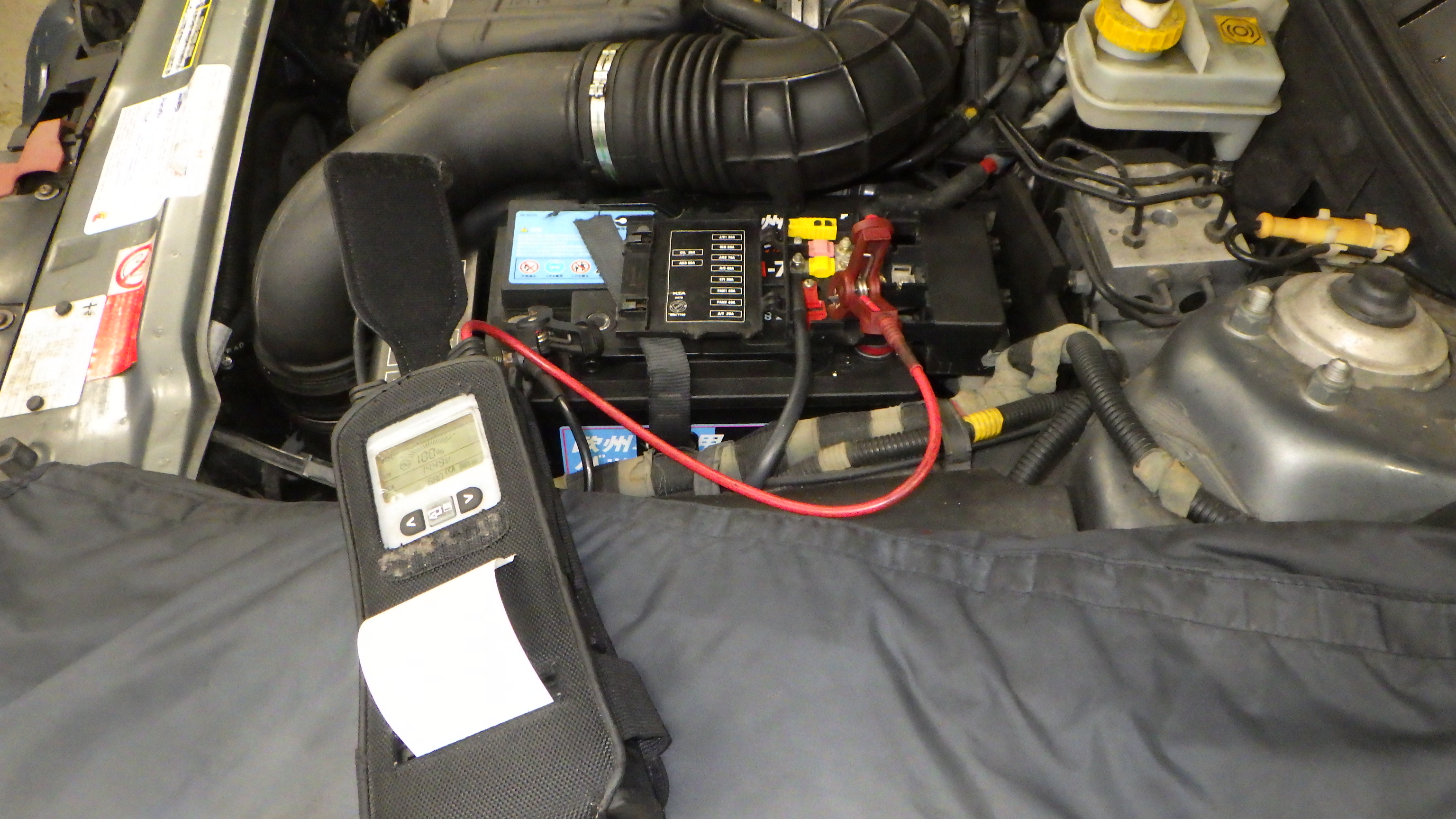 テスターにてバッテリーの点検を実施しています。