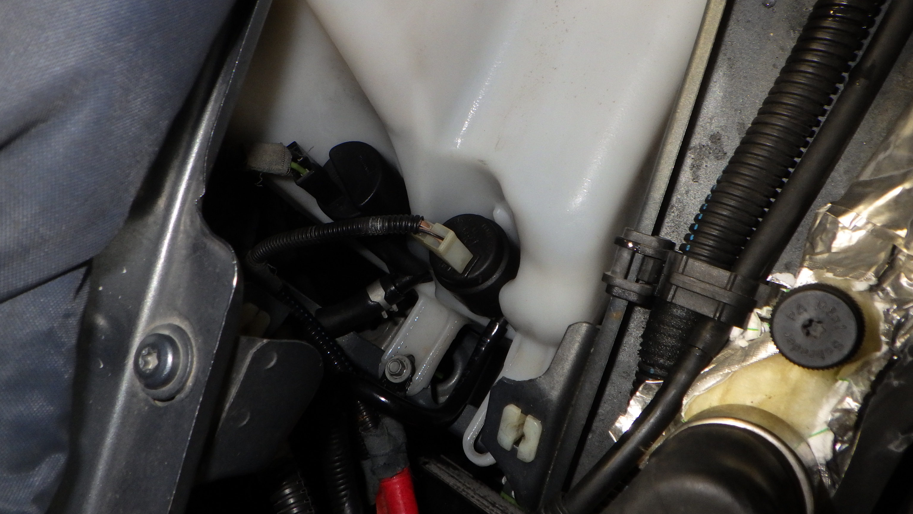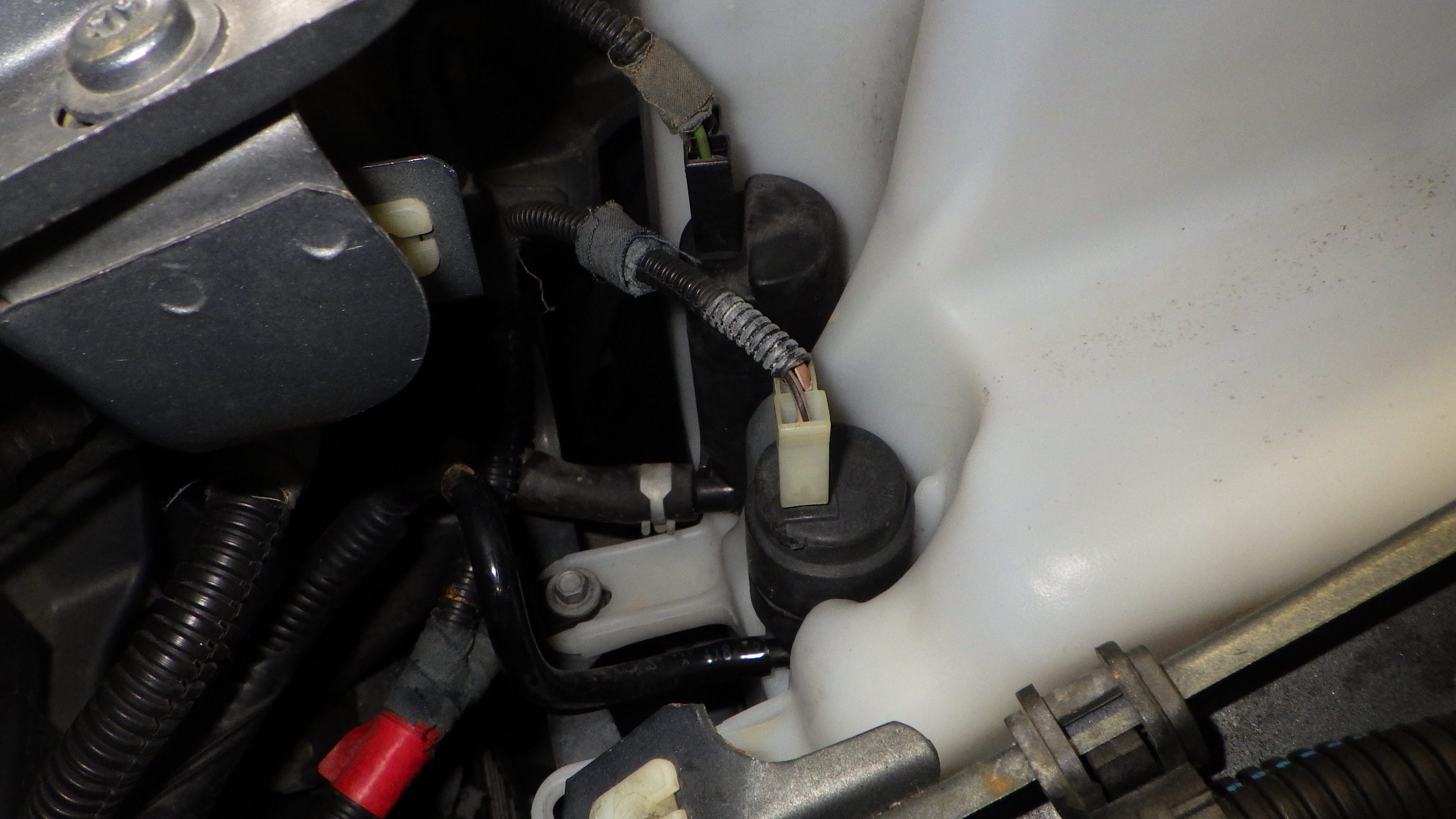 ウォッシャータンク周辺、ホース類からの漏れを点検しています。