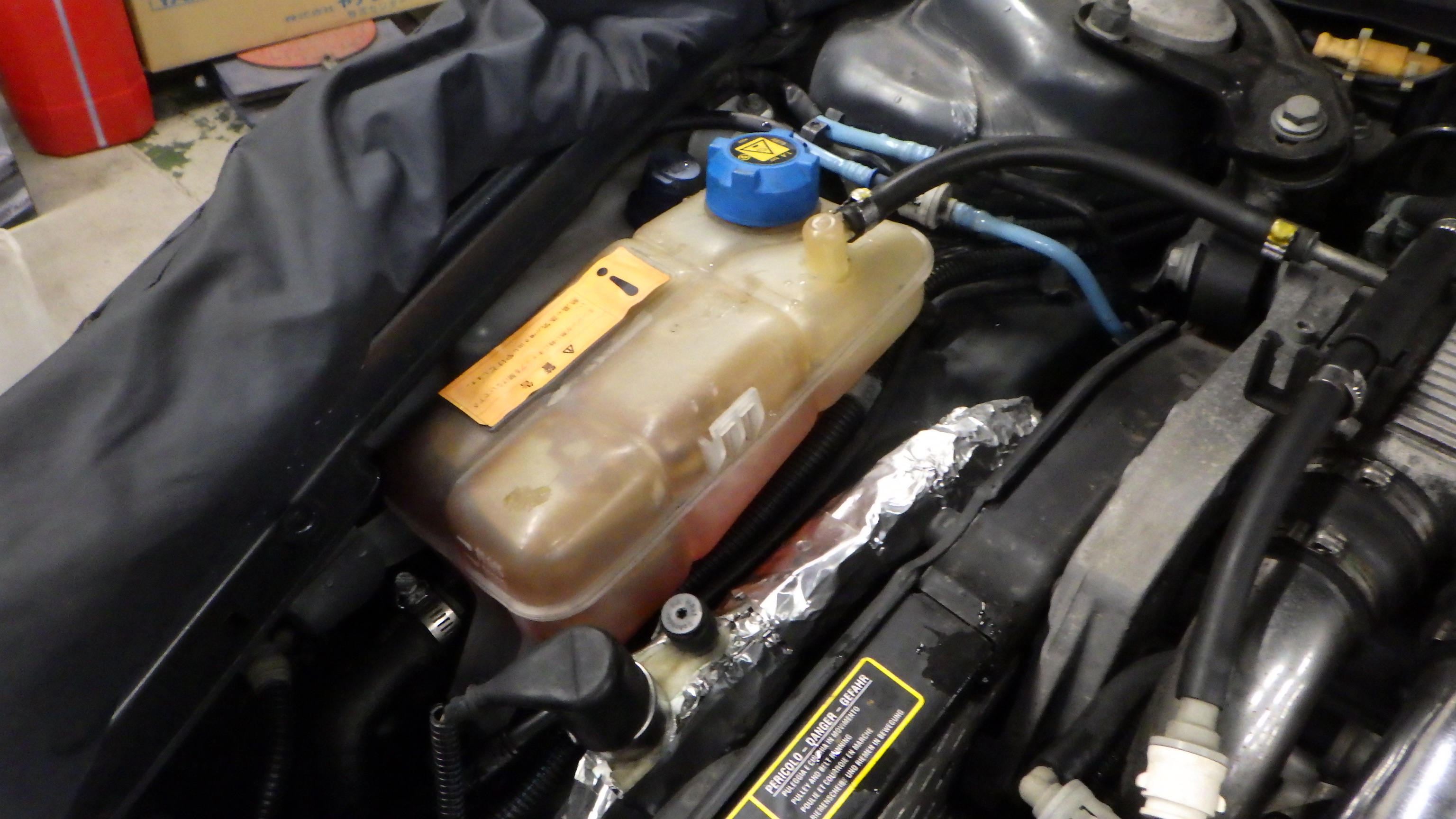 エンジン冷却水です。クーラントの状態、量、各部漏れ等点検実施しています。