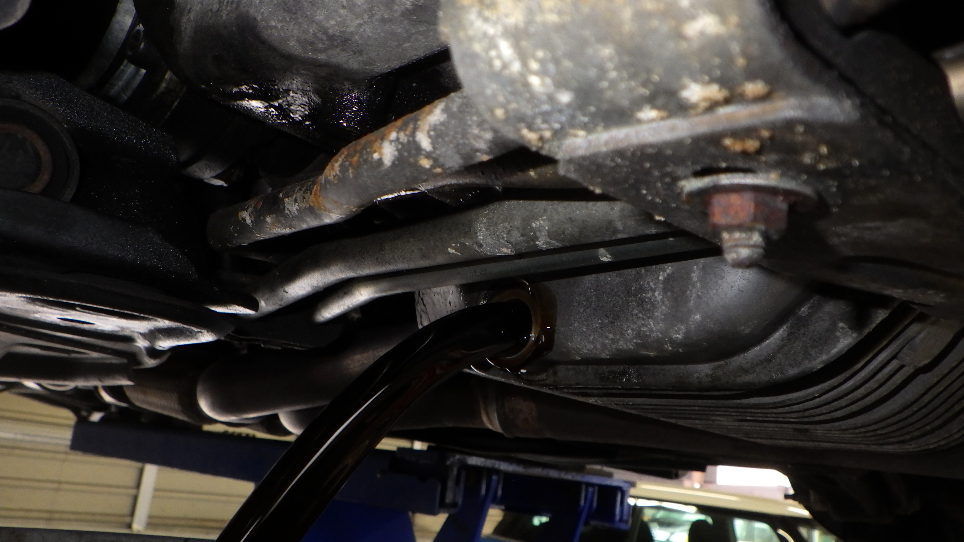 交換前、交換後のオイルです。交換後オイル量の点検も実施しています。