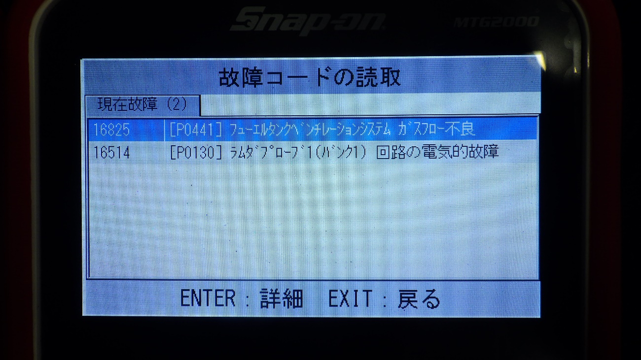キャニスター及び前側のラムダセンサーにエラーが表示しておりました。
