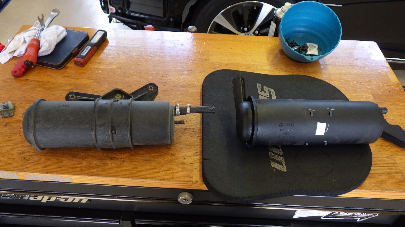 タイヤハウス、キャニスターが取り外れた状態になります。