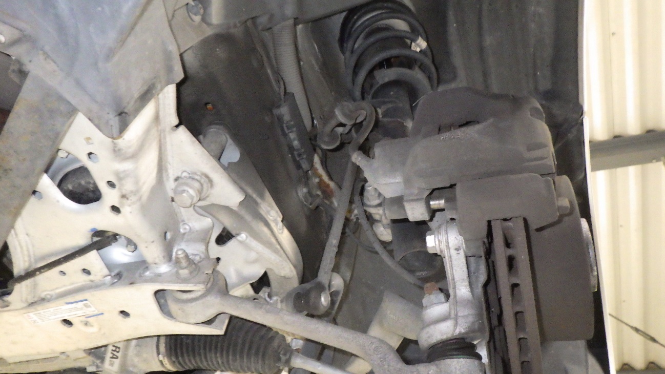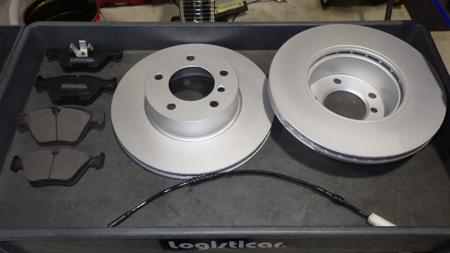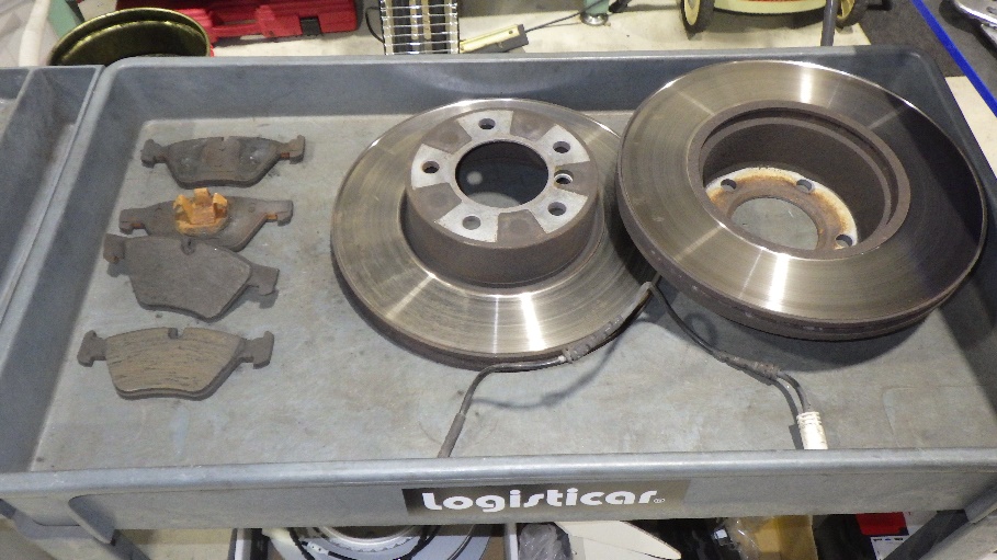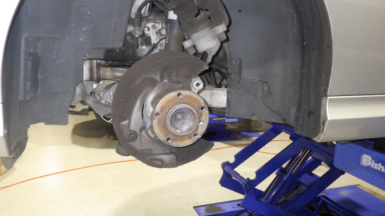 フロントのブレーキパッド、ローター、パッドセンサーです。