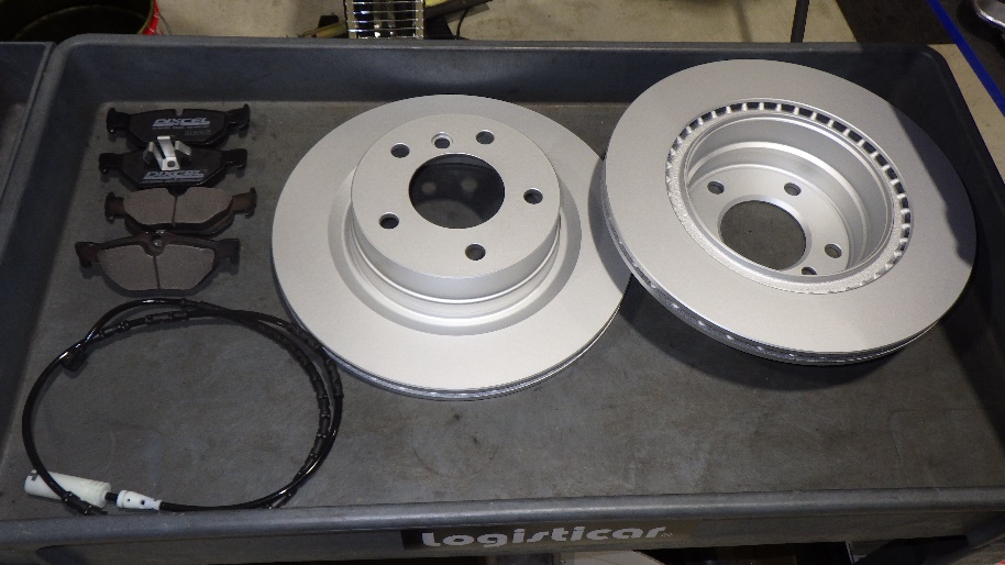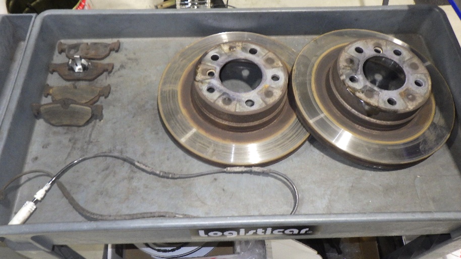 リアのブレーキパッド、ローター、パッドセンサーです。