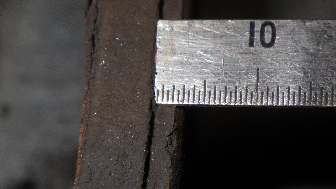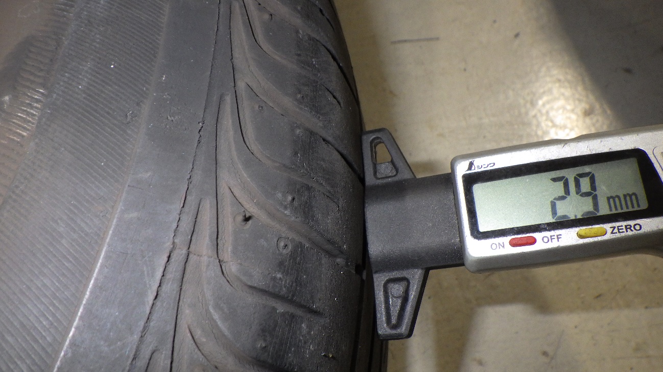 交換前リヤブレーキパッド残量は約3.0mmです。