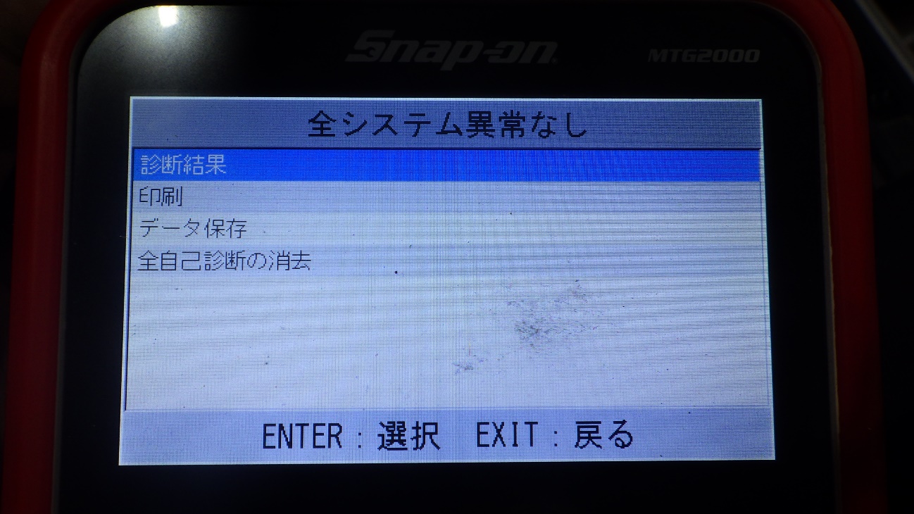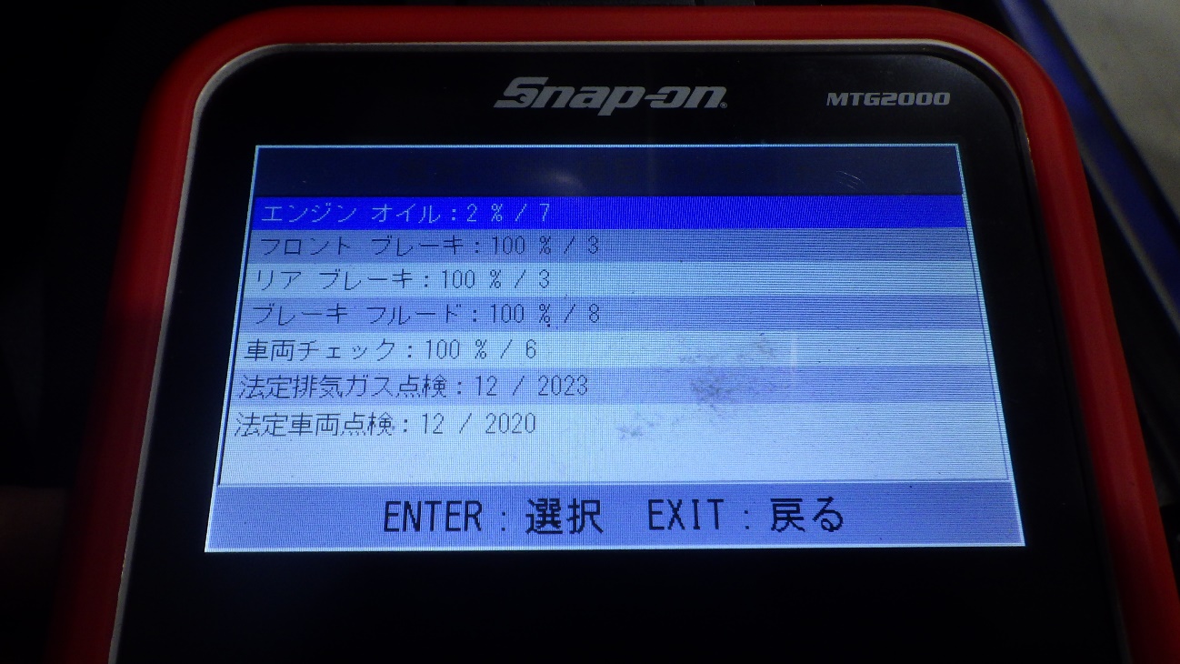 テスターにて故障コードの確認と、サービスのリセットを実施しています。