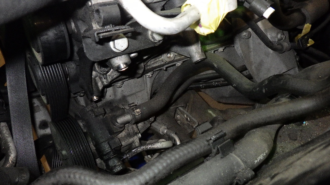 各補器類を取り外して、コンプレッサー単体にアクセスしている様子になります。