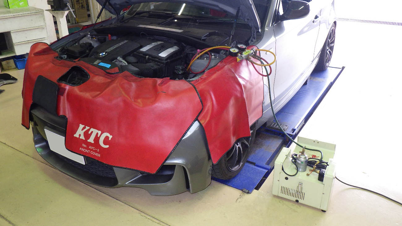 診断の結果、エアコンコンプレッサー側まで電圧は正常で、エアコンガスも充填されている