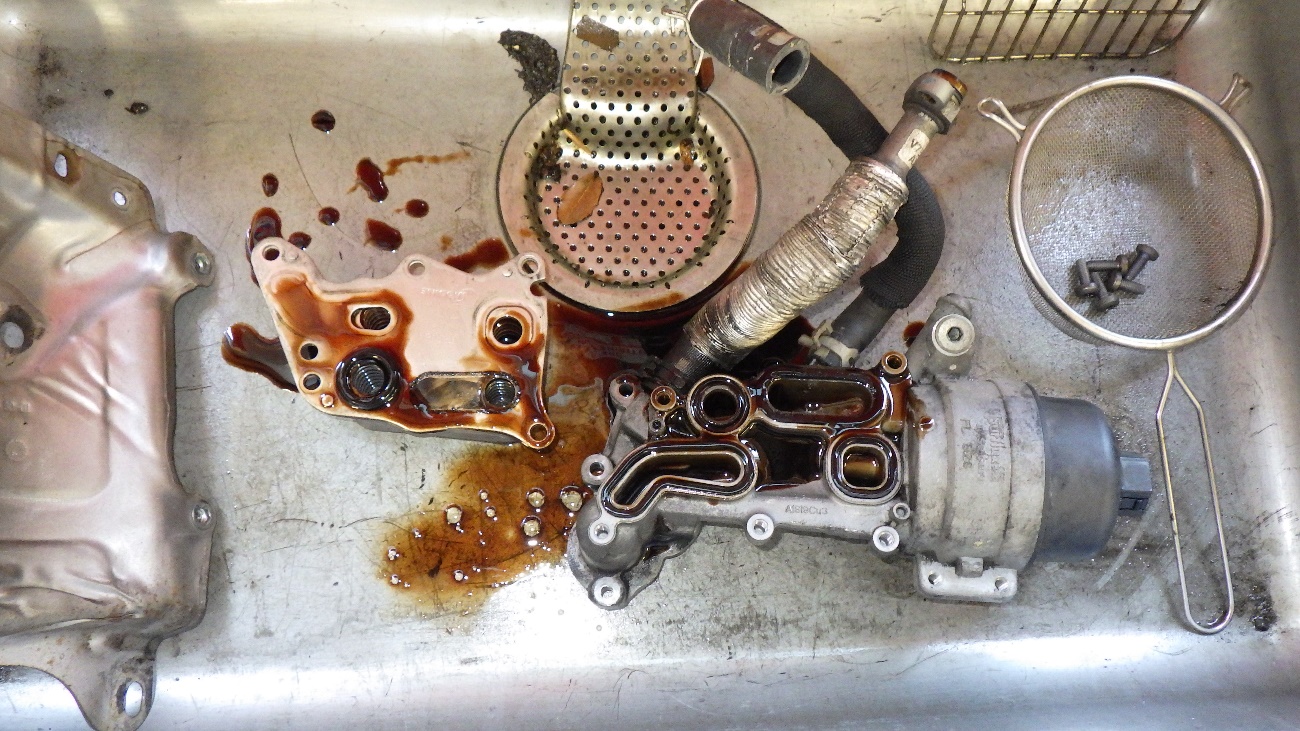 I様 BMWミニ オイル、LLC漏れ修理レポート 75256 km この度はご入庫ありがとうございます。 エンジンオイル、クーラント漏れの修理作業に取り掛かって…