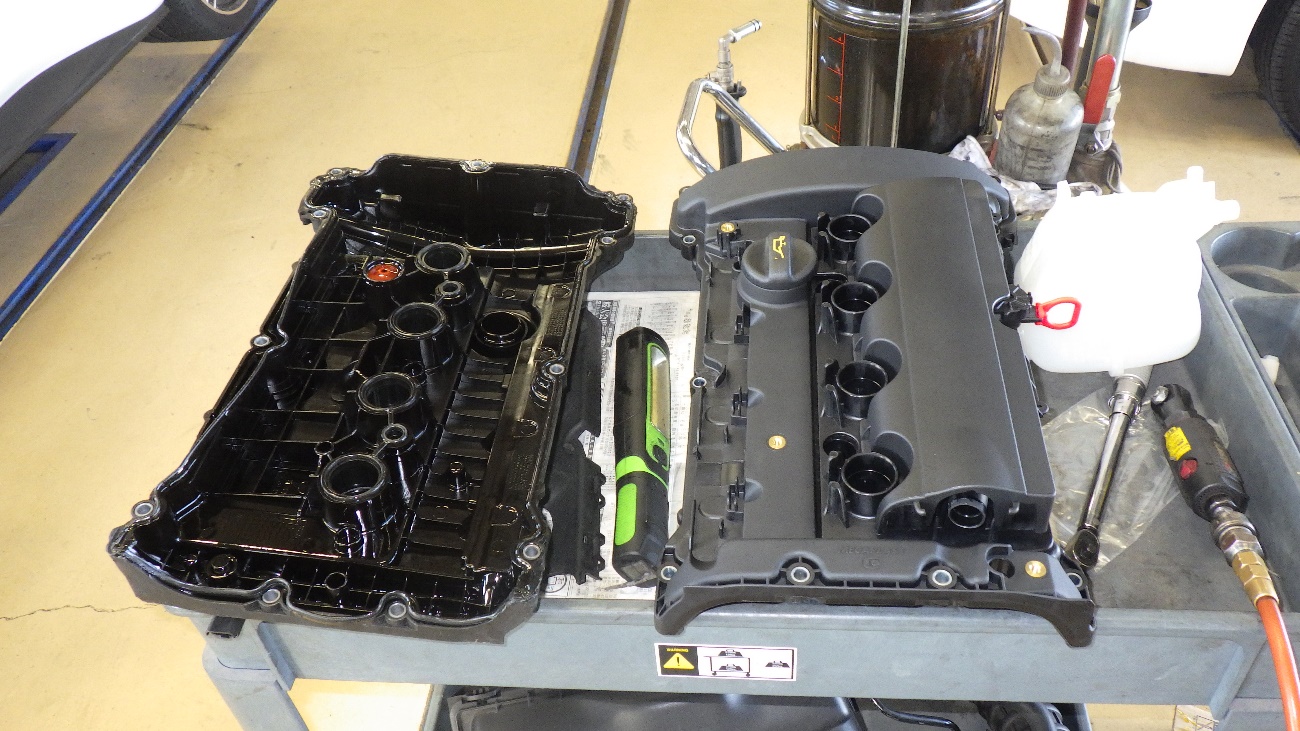 新旧比較したタペットカバーになります。今回お客様と相談の結果、タペットカバーも