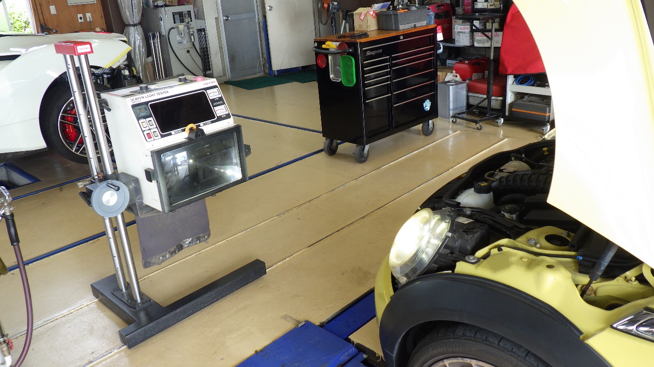 ヘッドライトをずらしたので、ヘッドライト光軸調整を行っております。