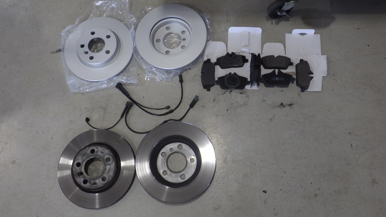新品と取り外したパッド、ディスク、パッドセンサーになります。
