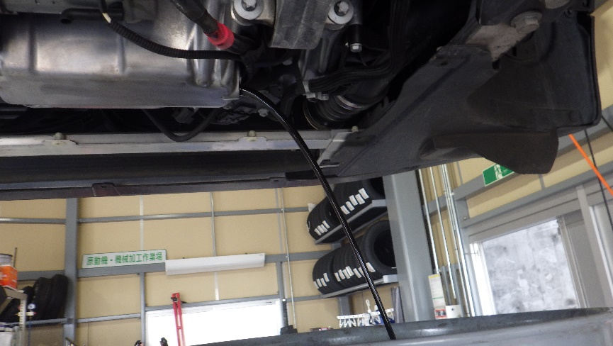 交換作業の様子です。交換後オイル量の点検も実施しています。
