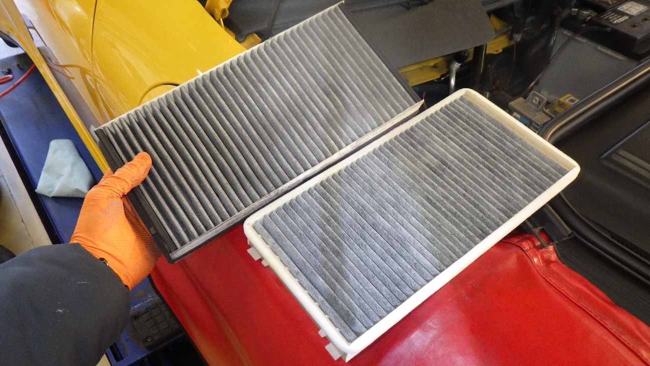 画像下側が新品のエアコンフィルターです。