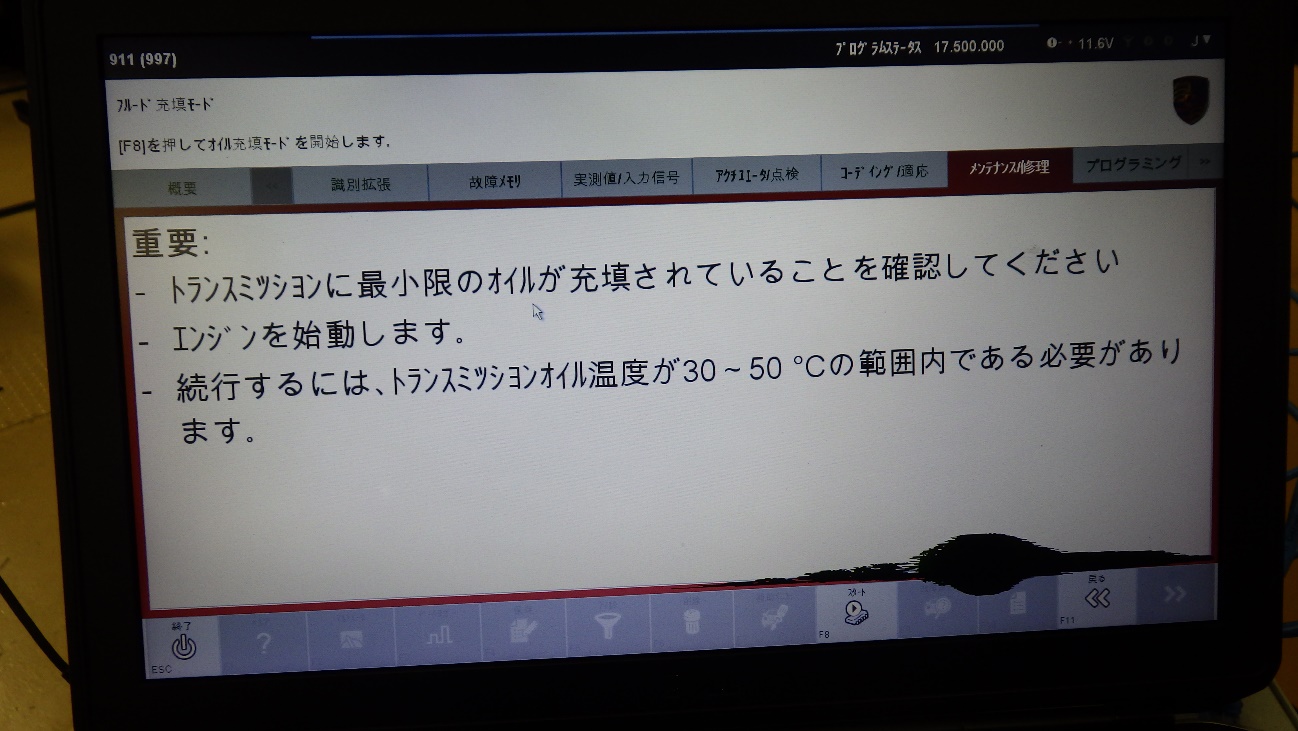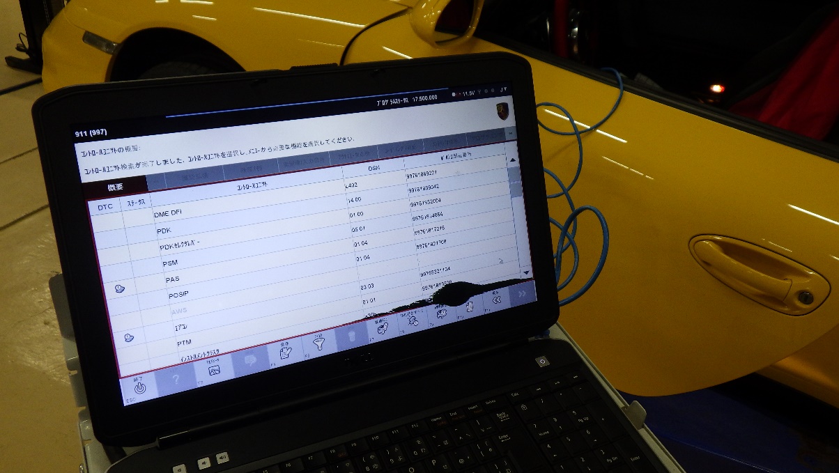 ポルシェ専用テスター(TESTER2)による制御系統のチェックと