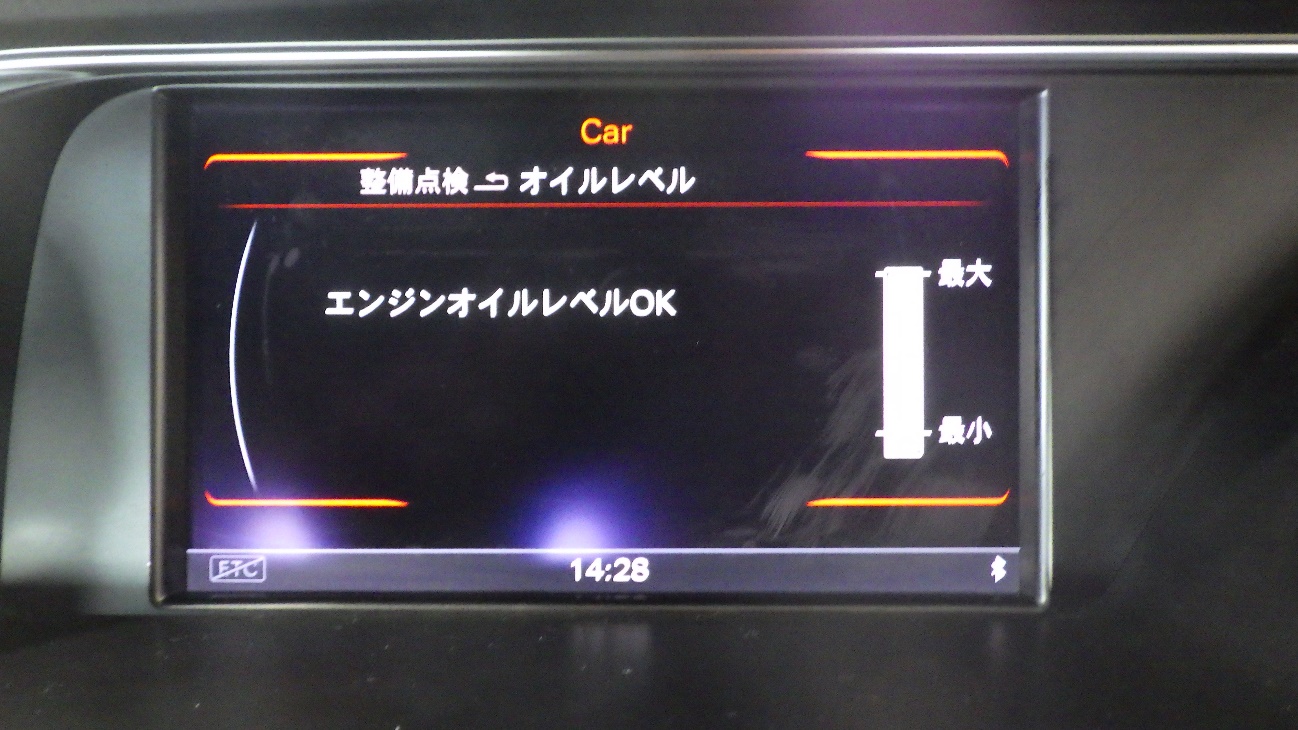 車内モニターよりオイル量の点検を実施しています。