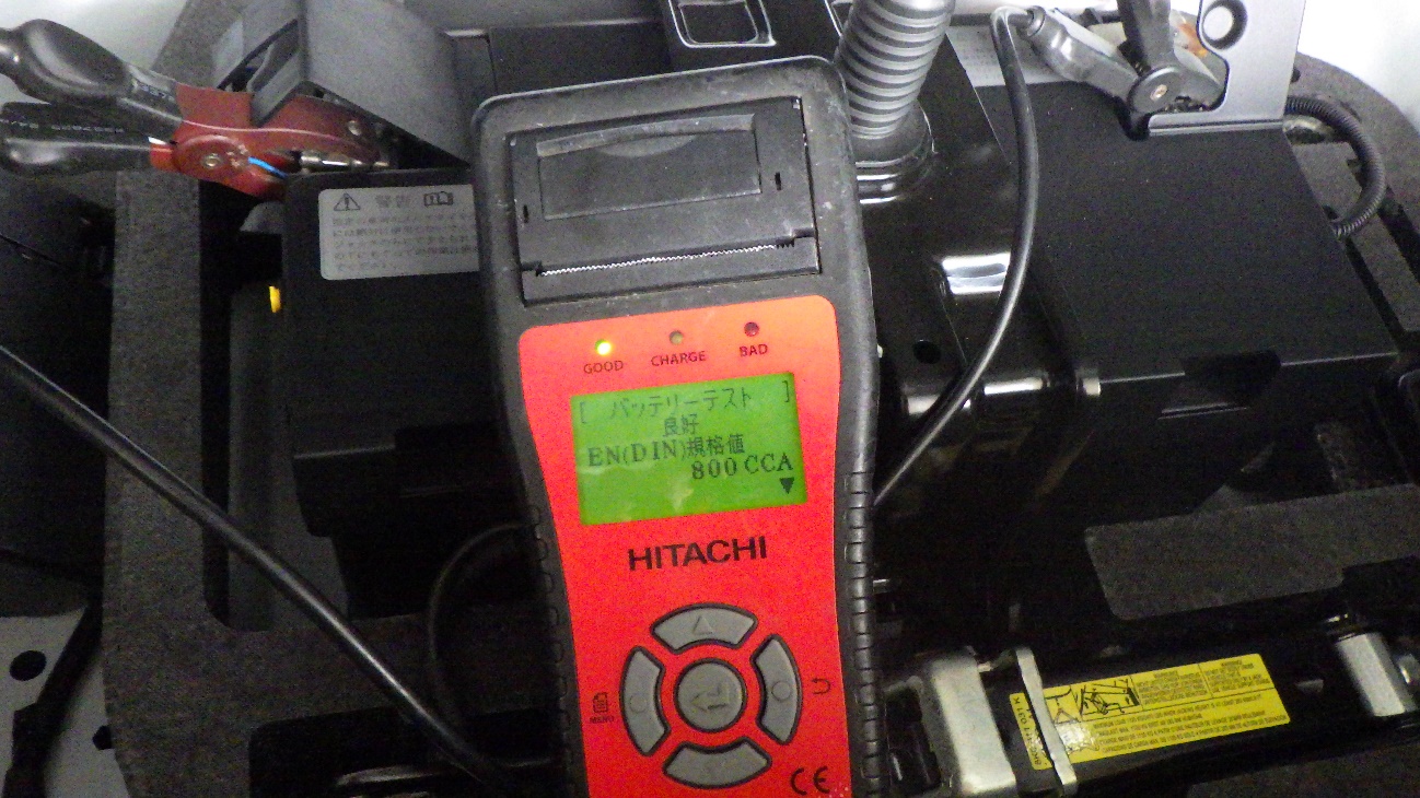テスターにてバッテリーの点検を実施しています。