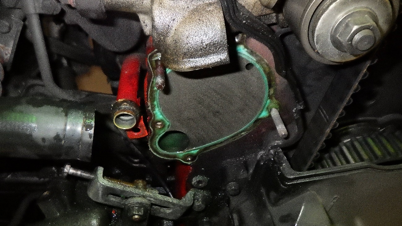 除去後、ウォーターポンプを組み付けて参ります。