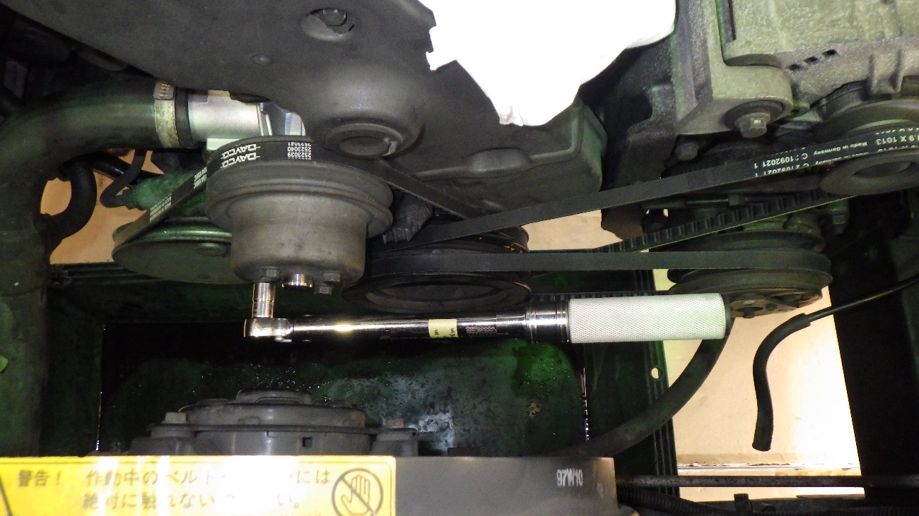 ウォーターポンプ交換後、組付けを規定トルクにて締め付けております。
