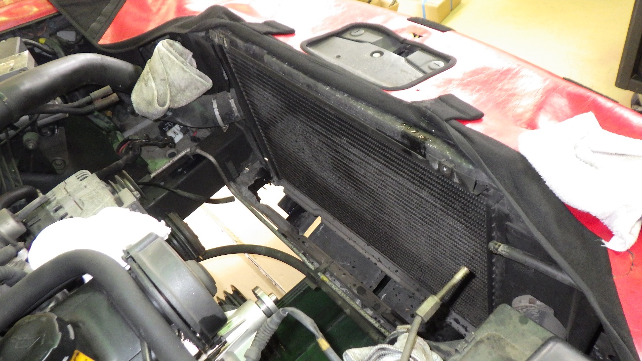 ラジエターが外れた様子になります。
