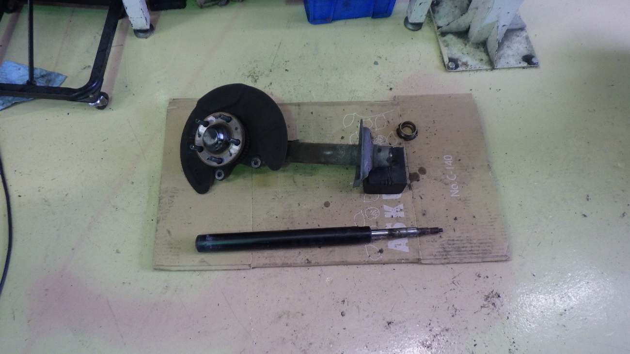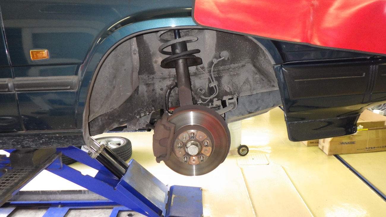 反対側の左フロントショックも同様に作業を行って参ります。