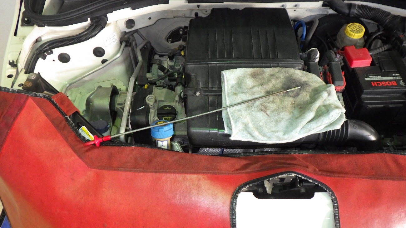 前回入庫時に交換させて頂いたエンジンオイルの点検様子になります。