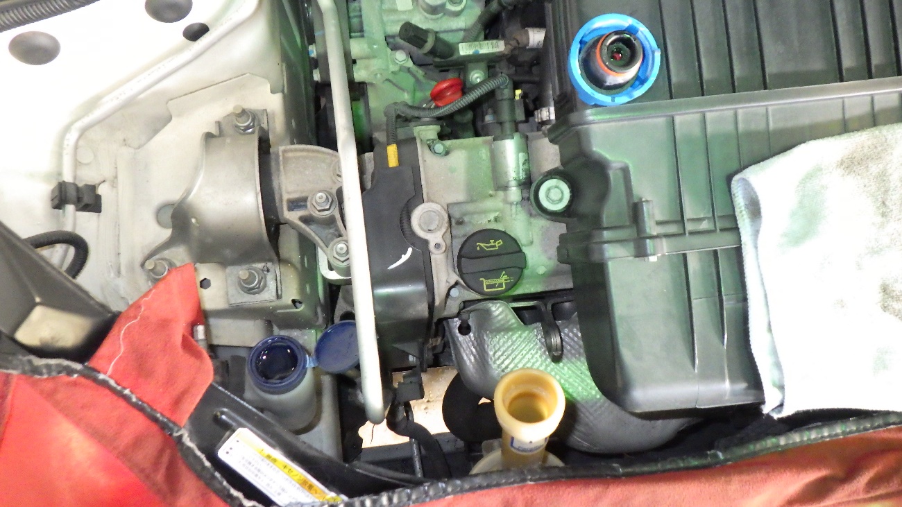 エンジンオイル漏れはございませんでしたが、クーラントの滲みがございました。