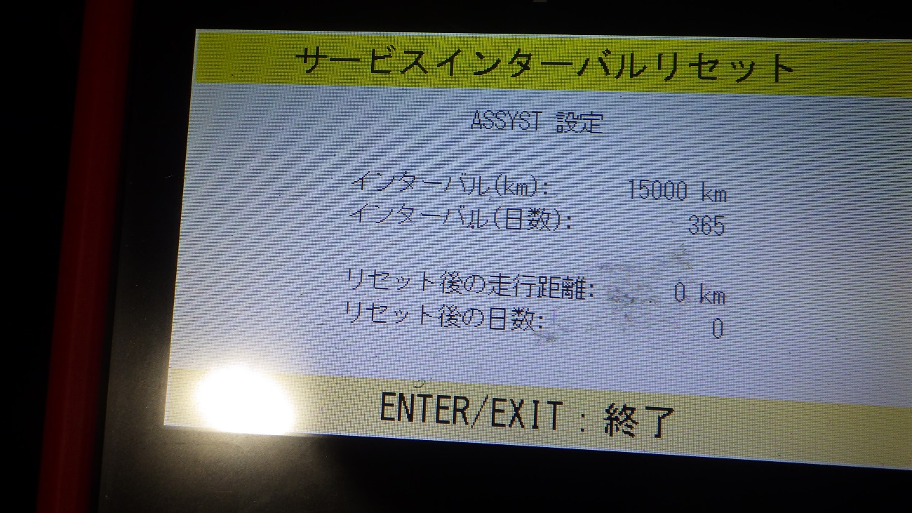テスターにて故障コードの確認と、サービスのリセットを実施しています。