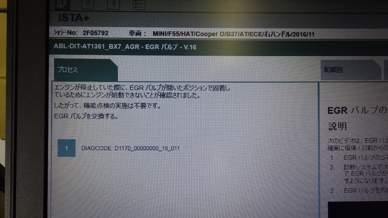 故障コードは複数ございましたが、今回排気のEGRバルブに不具合がありそうなので