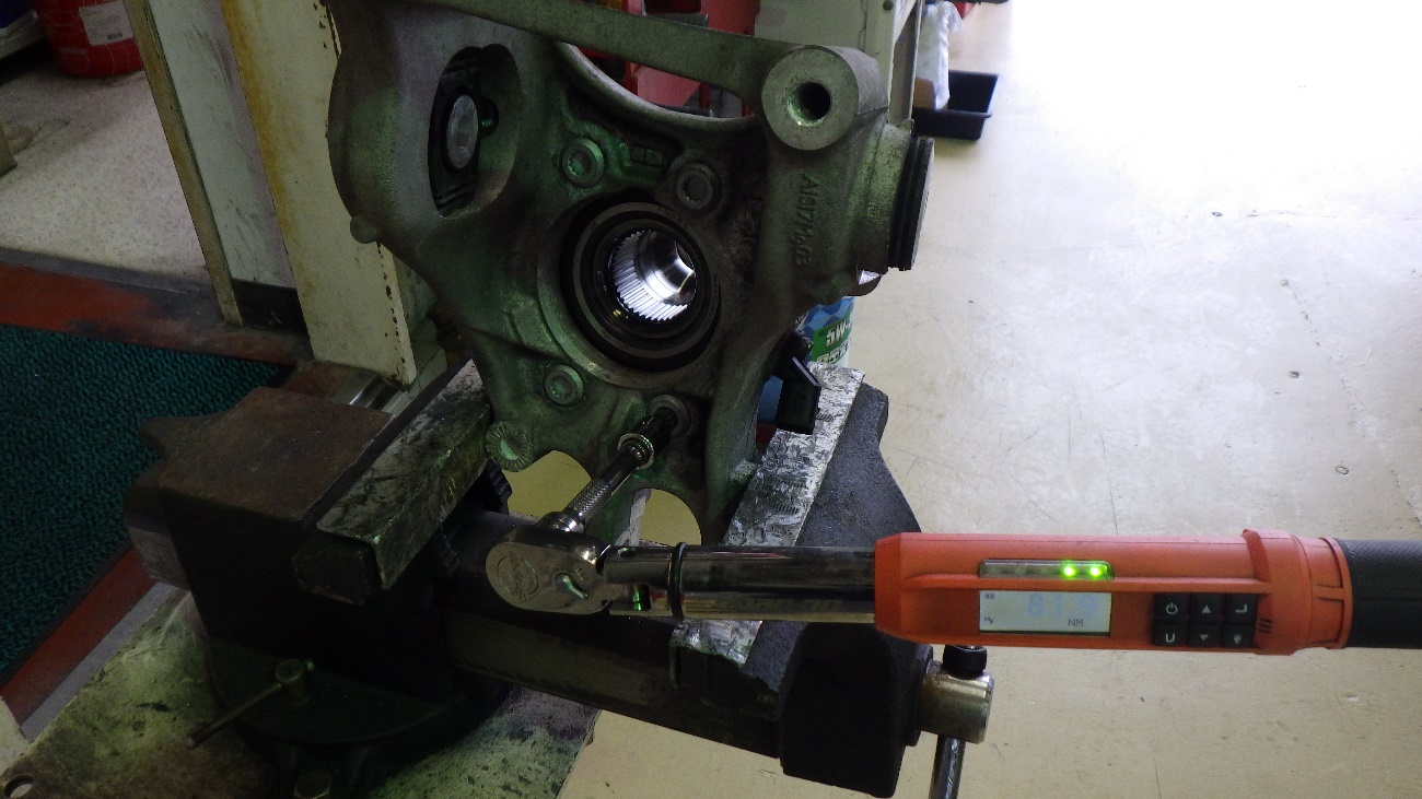 ハブとベアリング圧入後、ハブキャリアに組付けて参ります。