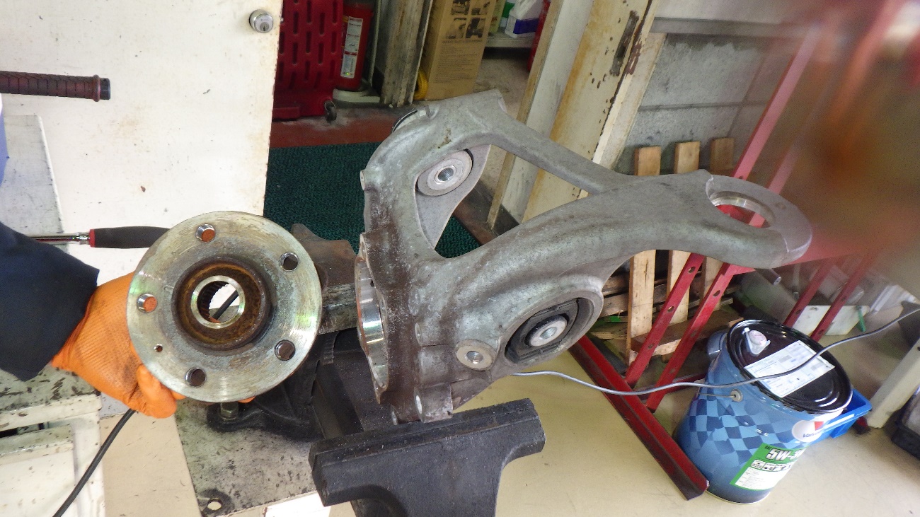 左リヤのハブベアリングASSY交換作業に取り掛かって参ります。