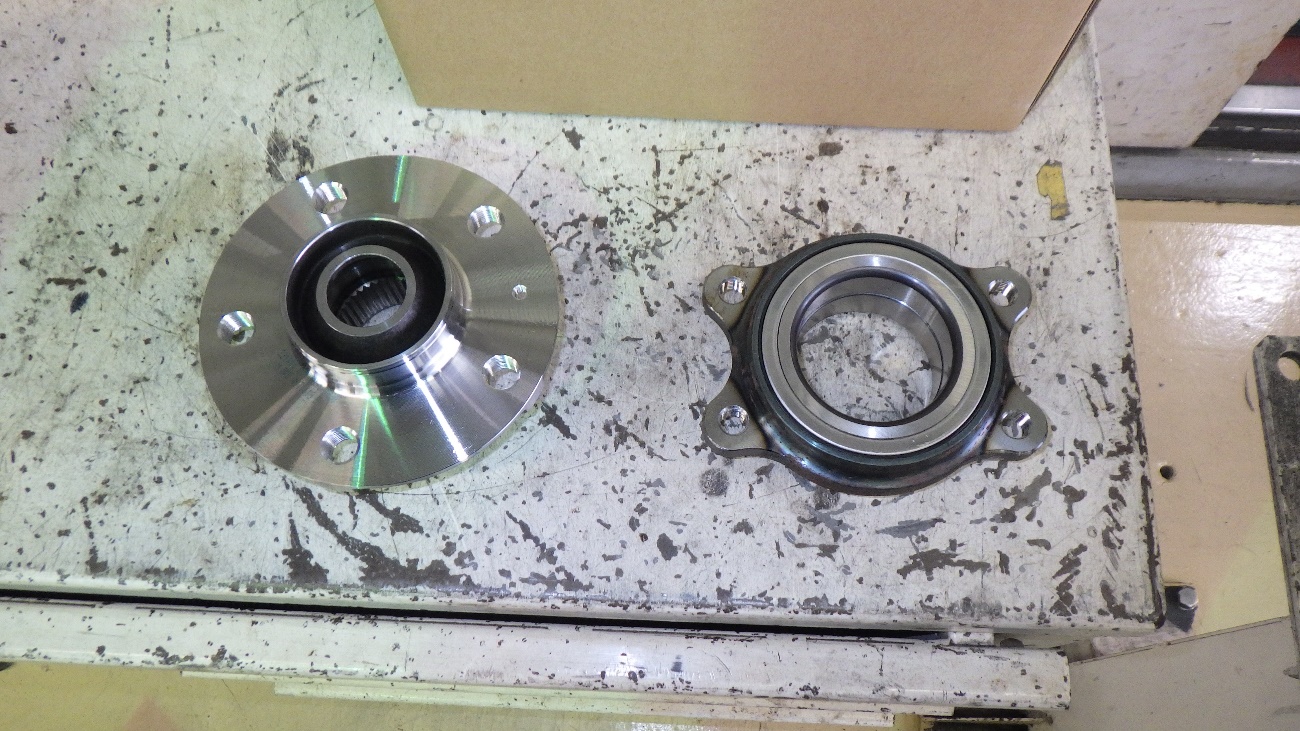 新しいハブとベアリングになります。部品は別々になるので、圧入して組み付けます。