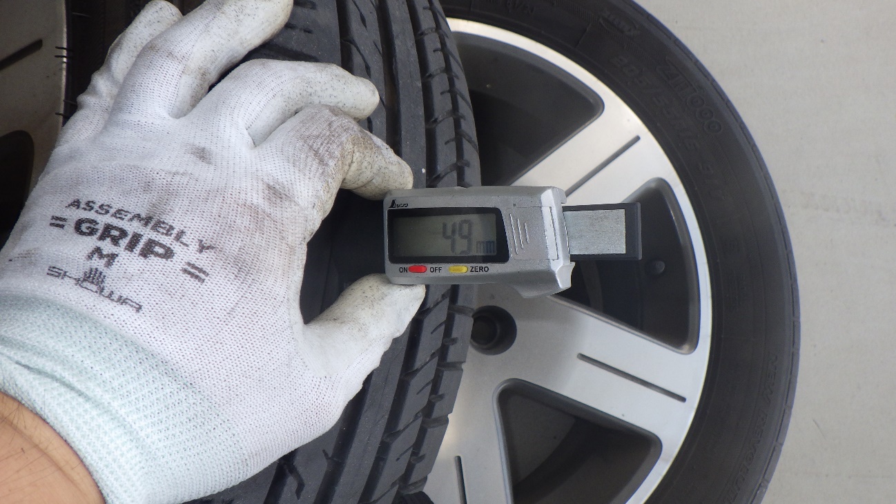 交換前リヤブレーキパッド残量は約5.5mmです。
