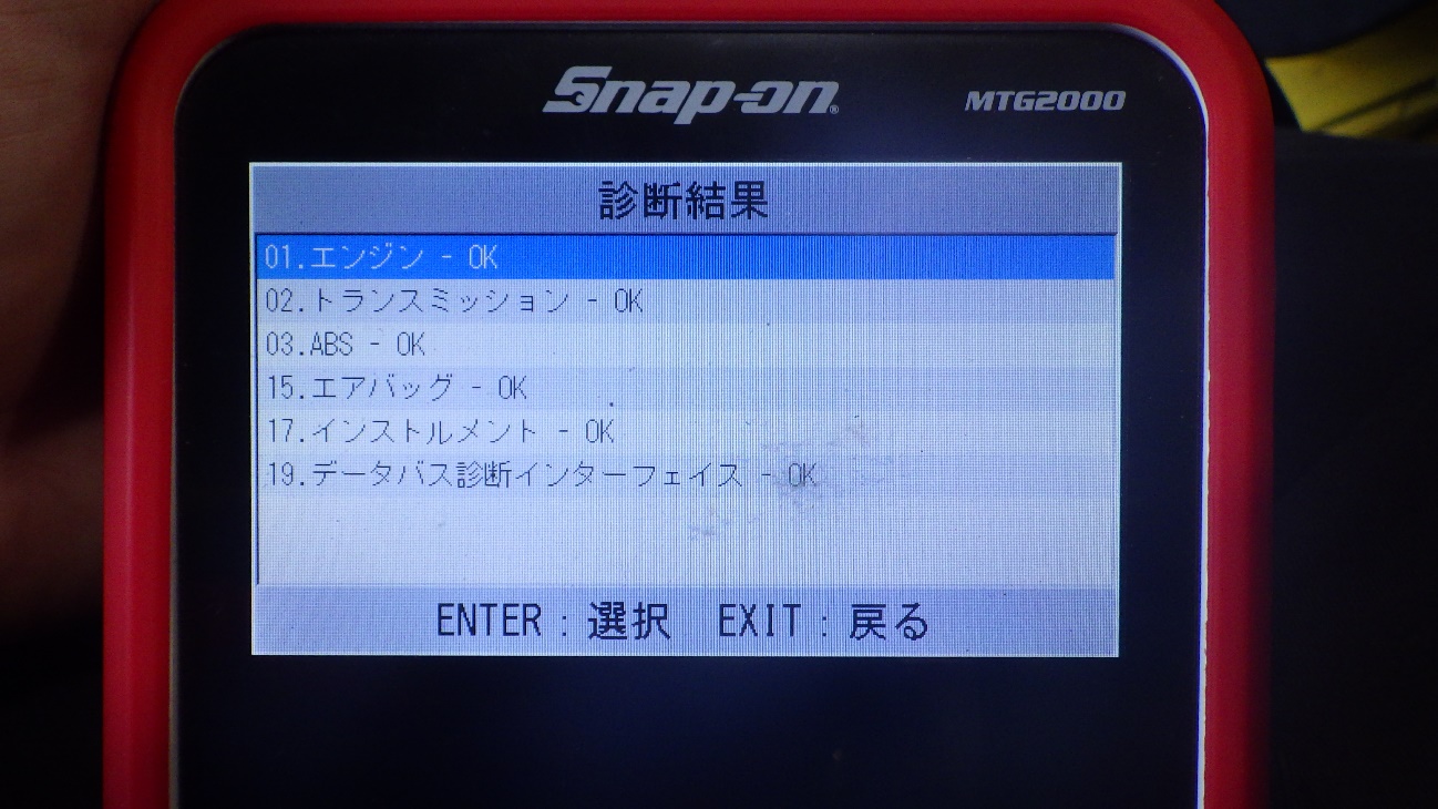 テスターにて故障コードの確認と、サービスのリセットを実施しています。