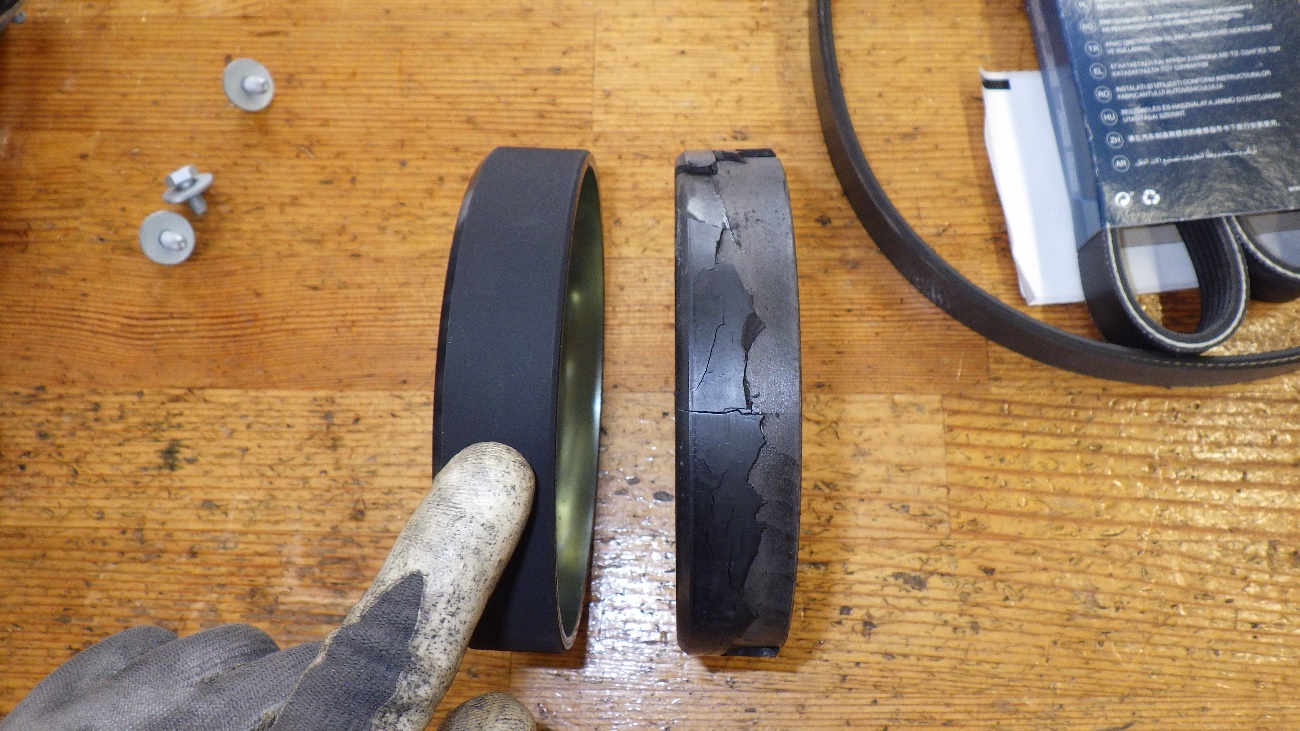 ベルトの亀裂等も見受けられるので、今回は交換させていただきます。