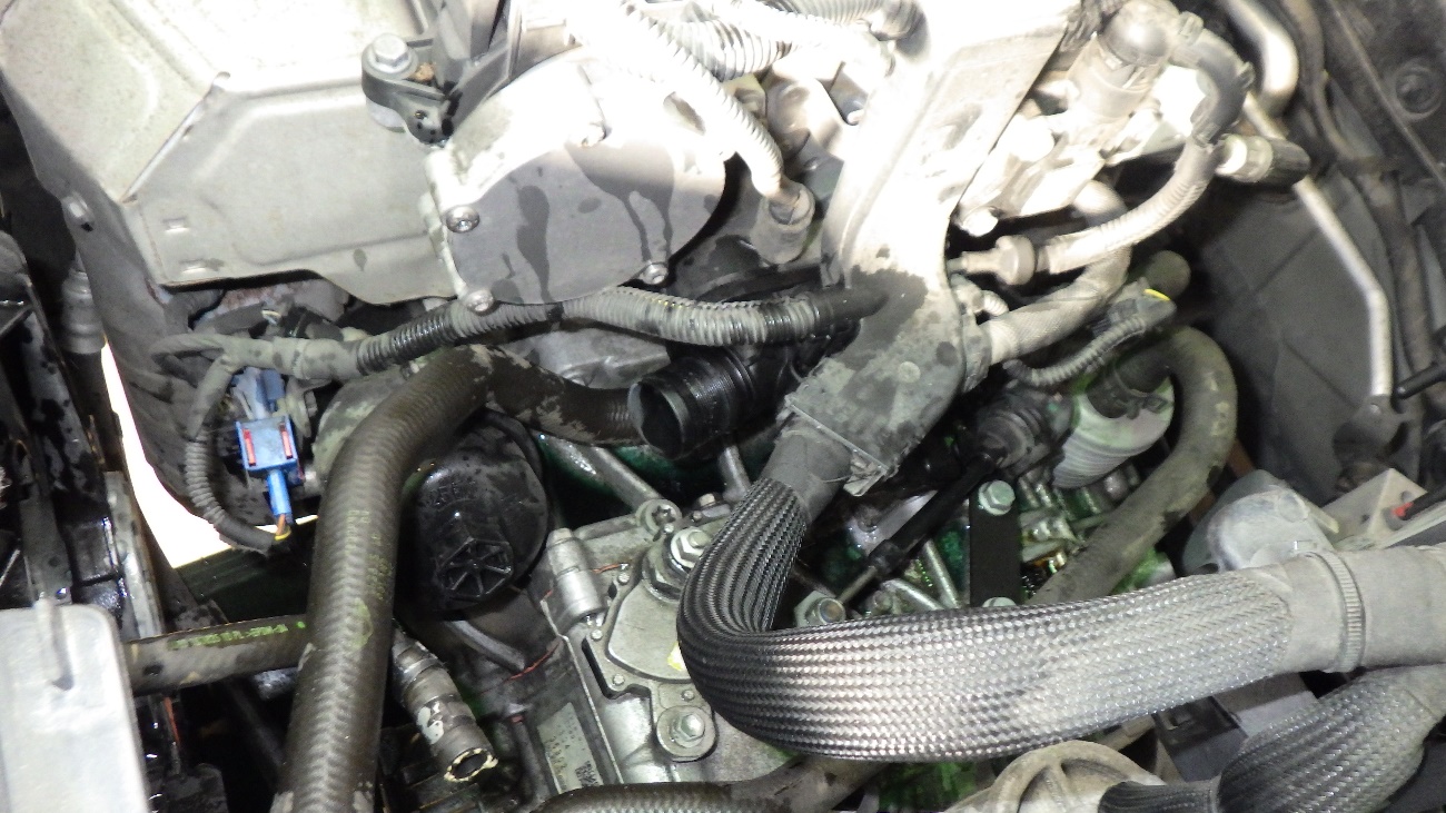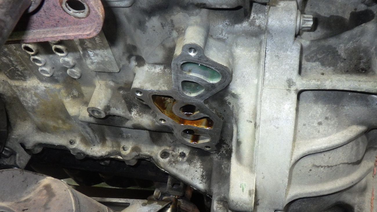 次にもう一つオイル漏れがありました。場所はタイミングチェーンよりオイルが