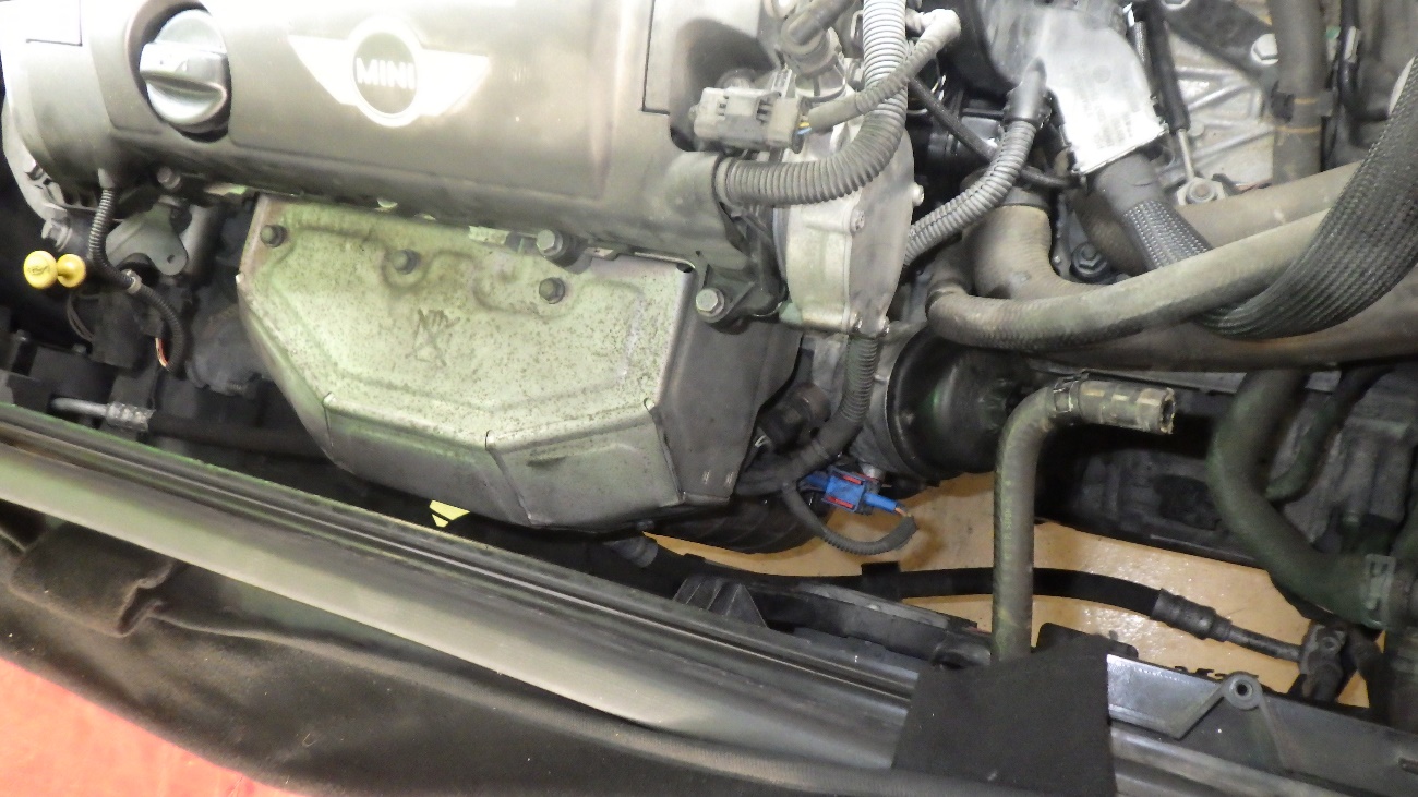 I様 BMWミニ オイル、LLC漏れ修理レポート 75256 km この度はご入庫ありがとうございます。 エンジンオイル、クーラント漏れの修理作業に取り掛かって…