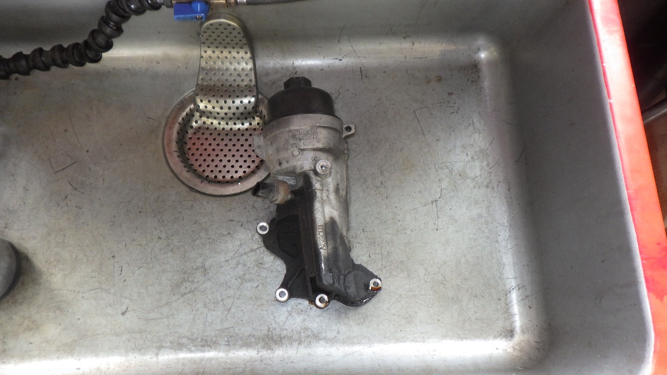 次にエンジンオイル漏れ修理ですが、今回オイルフィルターハウジングケースよりオイルが漏れておりましたので、ガスケットの交換作業に取り掛かって参ります。